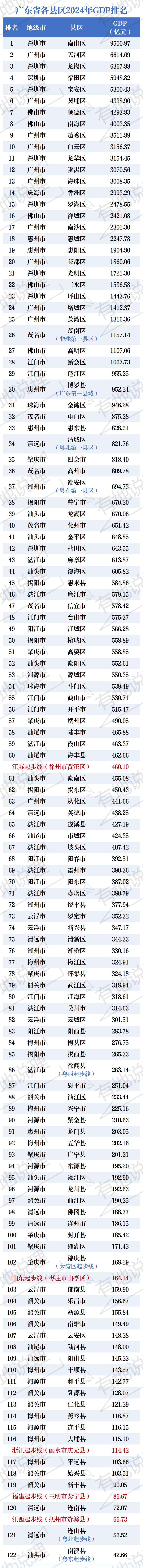 广东各县区2024年GDP排名,你的家乡列第几位?