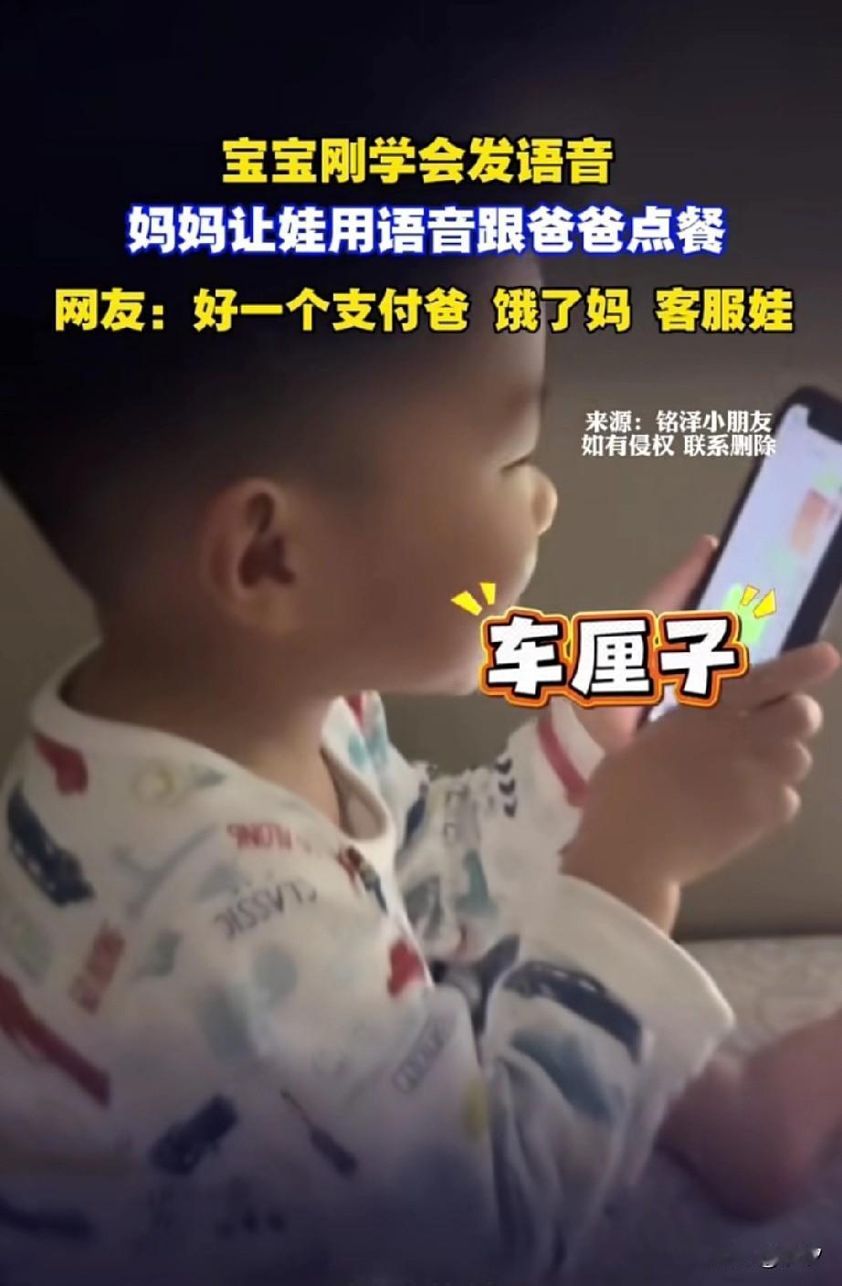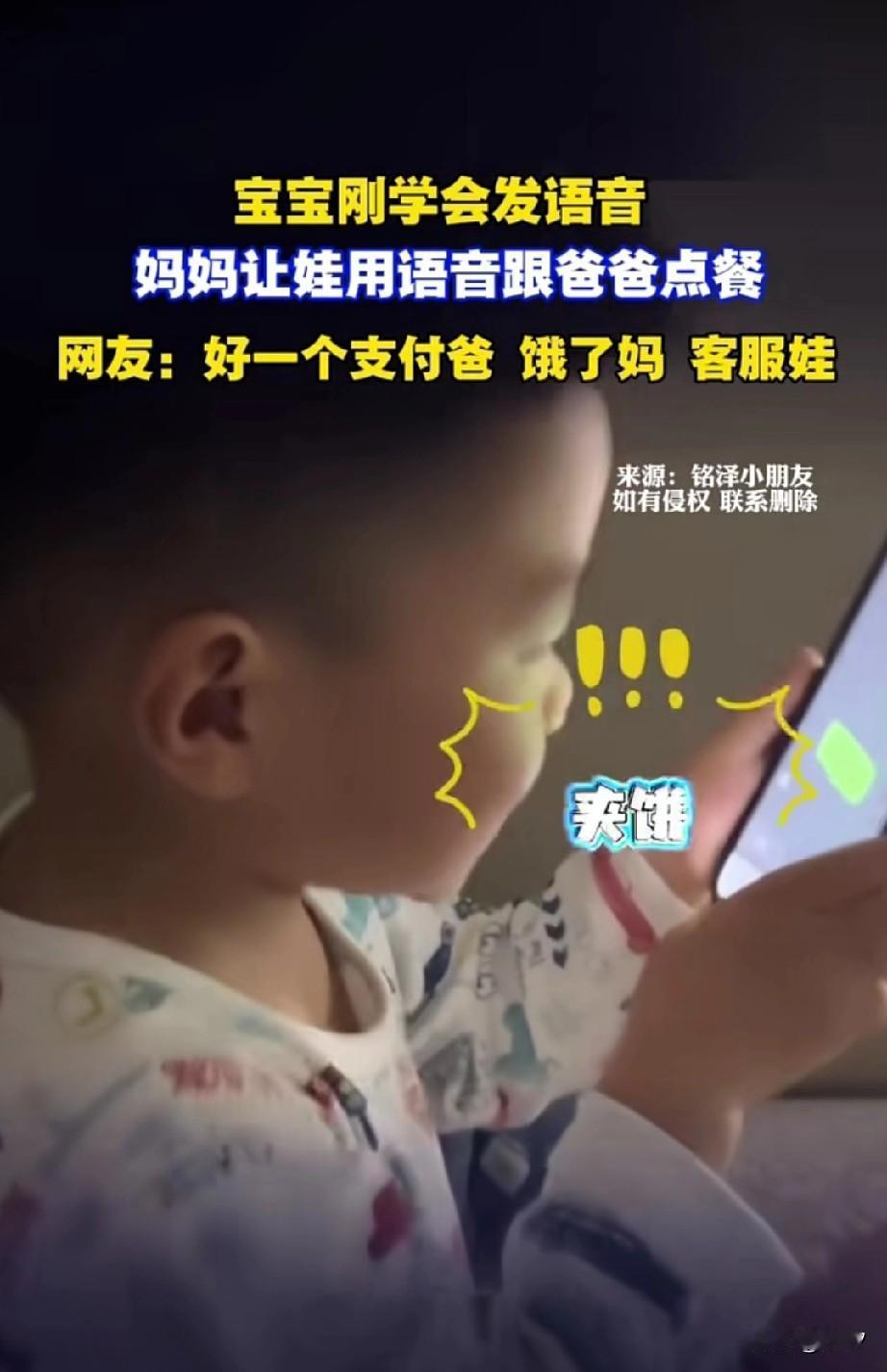 近日一段宝宝用语音点赞的视频火了,之前小宝宝拿着手机使用微信给爸爸发语音! 妈妈躲在他的身后,给他传递声音,宝宝对着语音说爸爸,你回来给我带点好吃的! 然后她的妈妈说车厘子,宝宝跟着学了一句车厘子,最后又是菜加饼,还有不知名的食物! 妈妈说好了,好了,宝宝犹豫了2秒,然后说了最重要的东西,要买彩虹糖!说了这么多,彩虹糖才是最重要的! 那的小孩真聪明,刚会说话就会独立思考了,报完妈妈吃的就报自己的! 网友表示好一个支付爸饿了妈?客服宝?还真是总结段位! 大家对于宝宝通过语音被妈妈指使点餐怎么看? 宝宝 “小孩哥”是什么梗 宝宝说他喜欢 宝宝心灵对话 小孩聊天记录