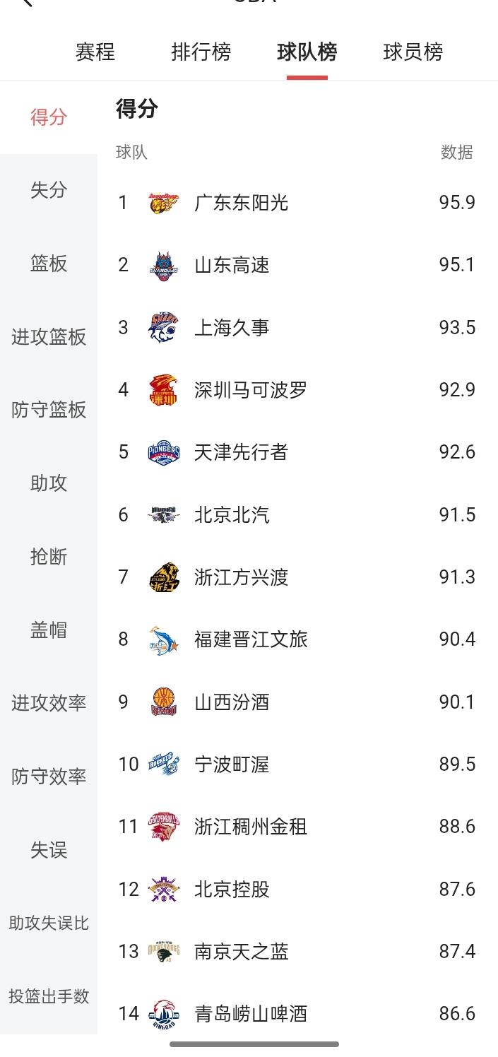 CBA联赛已经打了18轮,哪一个球队是进攻火力最猛的球队!现在有了最终了答案,那就是广东宏远队! 别人看广东队最近比赛好像输了几场,但目前整个联盟里面得分最高仍然是广东队,平均每场得分达到了95.9分,这个得分位列全联盟第一,这就说明了广东队在进攻端的表现确实是厉害。 但排名联赛第一的还是上个赛季的总冠军浙江广厦,目前以16胜2负排第一,广东队排在第二,这个赛季两支球队都将是总冠军有的争夺者,可惜两支球队目前还没有正面的交锋。 就不知道广东队如果是崔永熙和麦考尔复出以后,到底能够给广东队带来多少的提升,如果两支球队以全盛的阵容来比赛的话,谁赢谁输真的不好说啊!