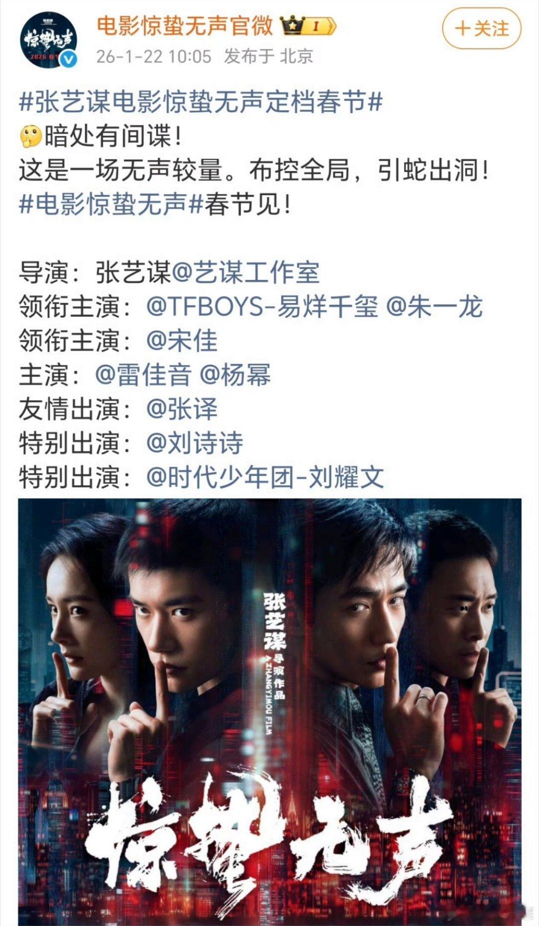 大咖超多的剧本杀既视感。张艺谋电影惊蛰无声定档春节
