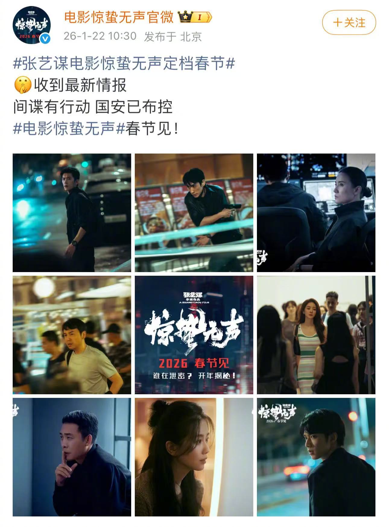 刘诗诗客串的那部电影要上了 是的!你没看错!刘诗诗客串张艺谋的电影《惊蛰无声》要上了!!一姐这次是纯纯特别出演,听说就客串拍摄了几天,妥妥是为了谋导和好剧本好角色而来~ 海报里那股独一份的清冷温柔感已经狠狠拿捏,看完更好奇到底是什么样的角色了!!!等着春节走进电影院观看了😚