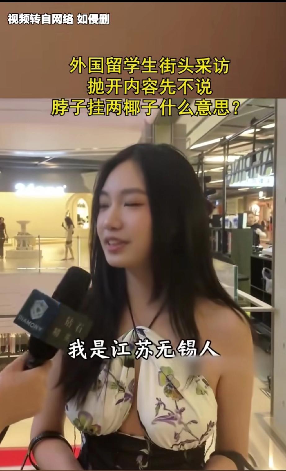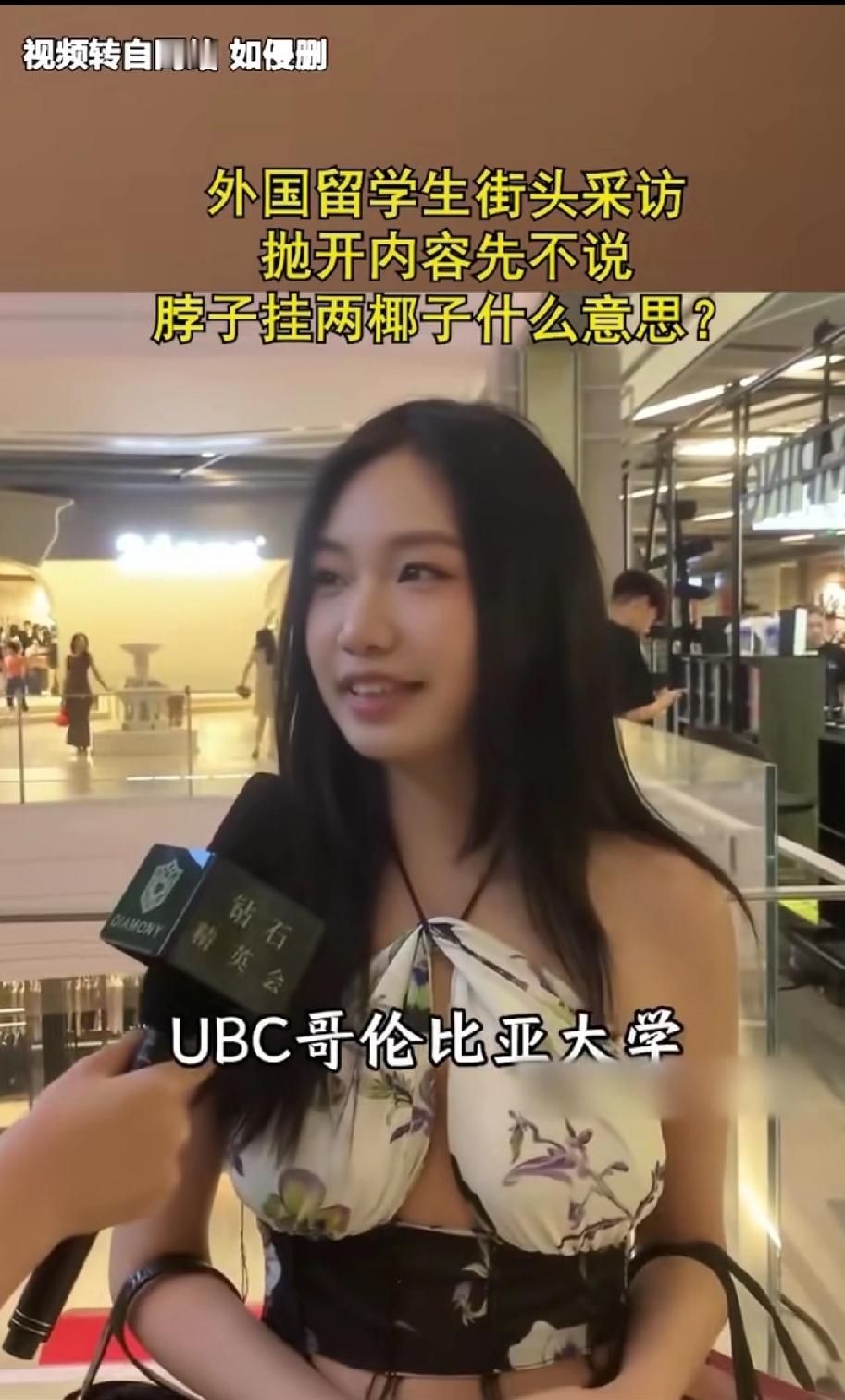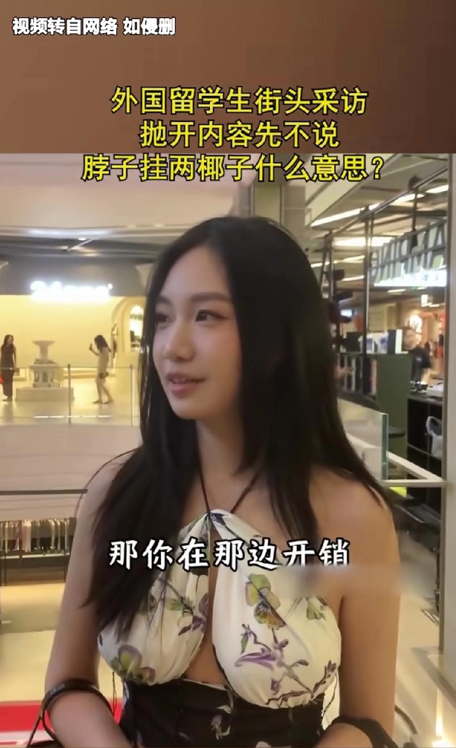 一留学华人小姐姐接受访问,没想到网友对小姐姐的留学经历好像丝毫不感兴趣,纷纷把注意力集中在小姐姐的穿戴上面! 看来国外大学果然要比国内的大学更开放更包容,这种把两个椰子挂在胸前式的穿戴在国内绝对难得一见,估计也没有女生有勇气敢在国内大学校园里里穿成这样! 其实结合小姐姐说的家庭条件,人家这样穿戴也无可厚非,记者问她在学校一个月开销有多大,她回答不知道,刷父母的话,而且从来就没有具体算过一个月到底刷多少,甚至可能连上限都没有,这就是实力决定生活品味啊!