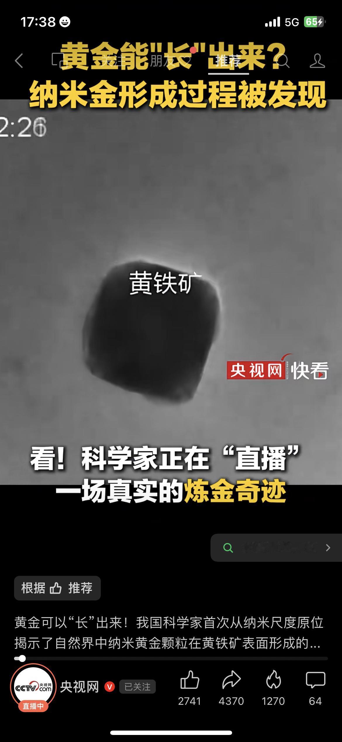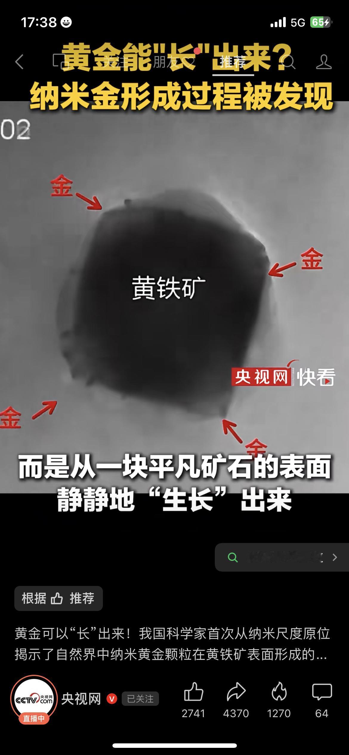 黄金真的能“长”出来!我国科学家最近取得了一项硬核突破,不是传说中的炼金魔法,而是发现纳米金颗粒可以在黄铁矿表面自然形成并“生长”。这一发现未来有望大幅降低黄金开采成本,甚至可能影响全球黄金供给格局。你觉得这是能撼动金价的黑科技,还是暂时停留在实验室的技术?硬核科技