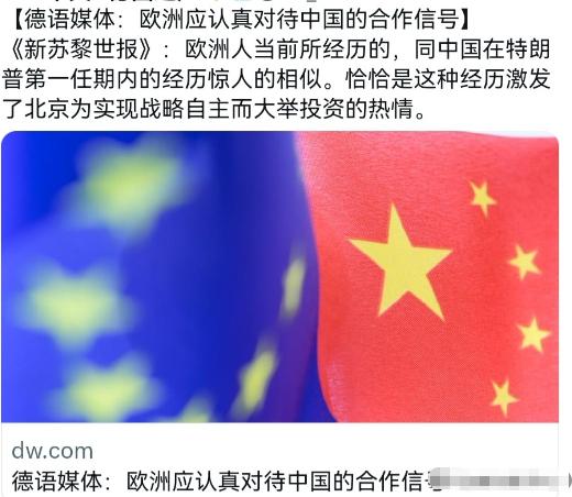 在连续遭到美国暴击之后,欧洲终于回过神来了!一贯反华的德国媒体表示,欧洲应认真对