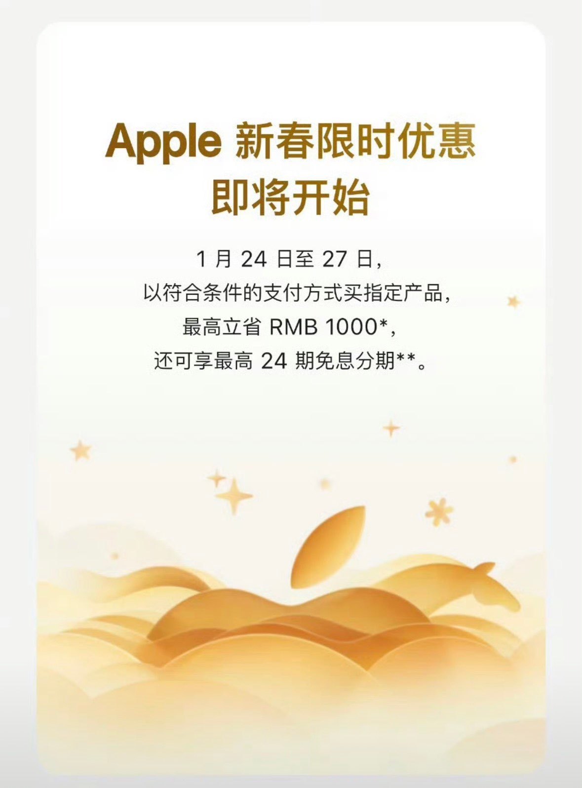 苹果推出新春优惠苹果这波活动也太没诚意了吧!活动就4天就算了,优惠机型只有iPhone 16/iPhone 16 Plus/iPhone 16e 这些老款,17系列直接不参与。价格对比第三方和国补根本没优势,也就售后能提一嘴,纯纯清库存的操作