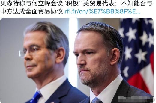 美国竟然一句硬话也没有对我们讲!虽然我们不松口,但美国已经主动给我们释放积极的信号了!1月22日,根据法新社报道,美国财长贝森特表示,本周我与中国国务院副总理何立峰举行了会晤,就中美两国的经济协议的落实情况进行了积极讨论。我期待尽快再次与副总理会面。   搁半年前,谁能想到美国会在关税问题上主动后撤?这里头的门道,得从两国的“账本”算起。   先说美国的日子。2025年春天那会,他们对华关税加到125%,结果自家港口堵了,卡车司机没活干,超市货架空了。商务部数据一摆,关税战开打后,美国贸易逆差比2017年还高50%,财政部长算过账:每维持1%的关税,政府要多掏80亿美元补贴企业,消费者每年多花1200亿。这哪是打贸易战,分明是拿美国老百姓的钱包开玩笑。   中国这边呢,反制措施稳得很。你加税,我就对等反制;你搞“对等关税”,我暂停部分合作。去年底的数据,中国对美出口逆势涨了3.7%,美国企业绕不开中国供应链。   更关键的是,中国手里攥着稀土、锂电池这些战略资源,美国车企停产三天就急得跳脚——这些都在谈判桌上摆着,硬碰硬美国讨不到便宜。   再看美国的国内压力。去年秋天,30家零售巨头联名给白宫写信,说高关税让圣诞季货架空了,选民要骂人。   中期选举逼近,特朗普团队算过账:关税每多维持一个月,制造业岗位流失20万。财长贝森特上台后,第一件事就是把鹰派顾问踢出团队,摆明了要止损。日内瓦会谈时,美方主动取消91%的关税,说是“战略调整”,实则是企业倒逼的结果。   还有全球棋盘的变化。瑞士、德国的媒体都在算,中美关税战让全球供应链每年损失1.2万亿美元,欧洲港口吞吐量降了15%。世界贸易组织总干事私下说,中美谈不拢,全球经济“要休克”。美国再强硬,也扛不住盟友的压力——毕竟美元地位、美股稳定,都连着全球市场的信心。   中国的节奏也很关键。从日内瓦到斯德哥尔摩,每次会谈都是美国先请求,中国“考虑全球期待”后才接触。去年达沃斯论坛,何立峰副总理提的“多边主义”,说白了就是不吃单边主义那套。你看最新的表态,美国说“不脱钩”,中国强调“平等协商”,主动权始终在咱们手里。   现在的美国,像极了做生意赔本的老板。关税降了91%,换来三个月的喘息期,还得定期来北京“汇报进度”。他们不是不想硬,而是国内通胀、企业倒闭、选民骂娘,哪一样都比面子重要。   中国呢,该反制反制,该谈就谈,稳稳握着“你需要我”的底牌。这局面,不是谁让步,是实力对比的自然结果。接下来的90天,美国要解决库存,要稳定选举,怕是得更主动地找咱们聊。   官方信源:法新社