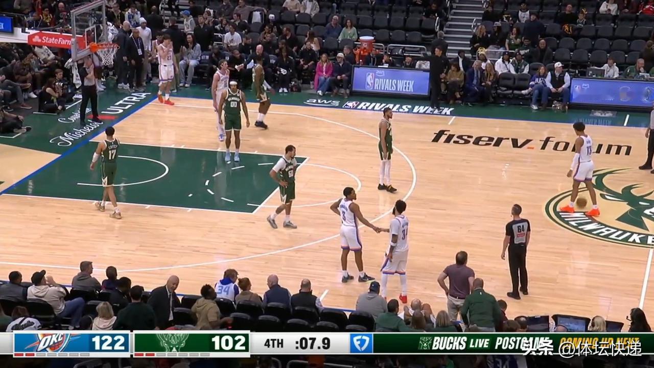 雷霆客场大胜雄鹿。NBA常规赛雷霆客战雄鹿,雷霆近段时间状态一般,伤病潮来袭。而雄鹿赛季以来有失水准,与上赛季相比不值一提。首节开始,雷霆攻守俱佳,迅速拉大比分,雄鹿表现依旧低靡。首节结束,雷霆38:18大比分领先。次节雄鹿状态有所回暖,一直咬紧比分。半场结束,雷霆69:51继续领先。第三节雄鹿一度有翻盘的希望,但被雷霆一波攻击流再次浇灭。三节结束,雷霆99:77雄鹿。第四节雷霆没有再给雄鹿机会,全场比赛结束,雷霆122:102雄鹿。