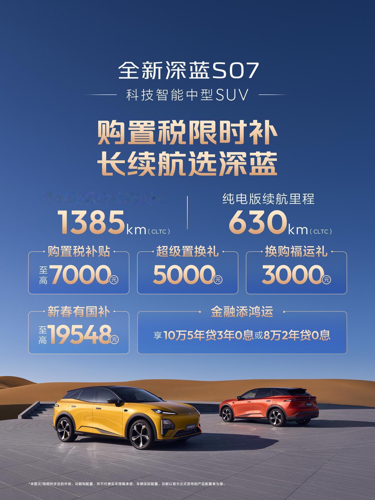 快到春节了,深蓝直播间高管齐送祝福,还给咱们发了购车福利,覆盖深蓝汽车旗下多款新品,有轿跑,有大六座,有硬派方盒子,品牌特别全,还都主打的长续航,春节返乡没压力,每台车的优惠力度和优惠项目不一样,大家看图参考,央企背书、续航长、限时补贴三重利好,算下来到手还挺香的。【来自懂车帝车友圈】