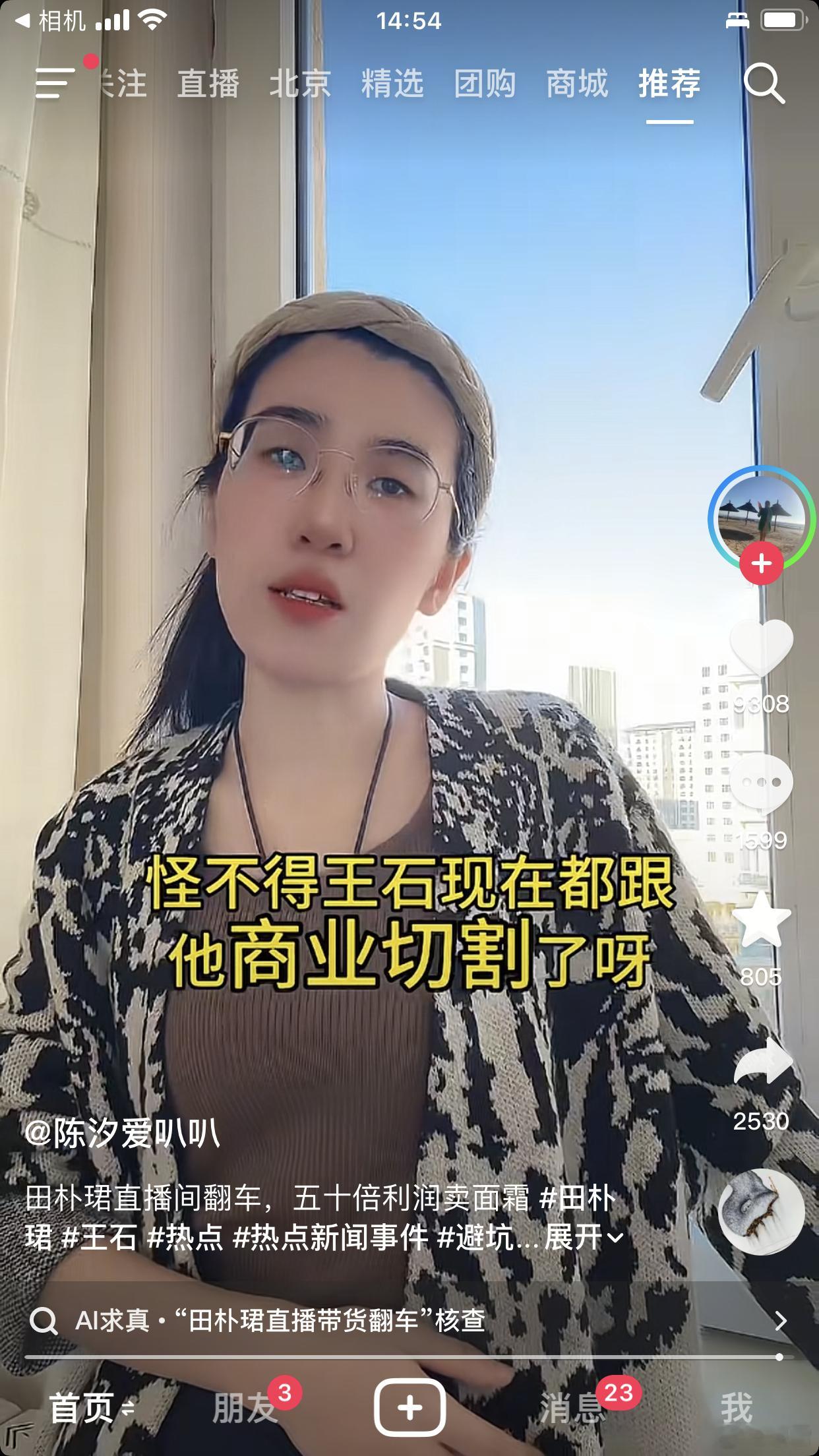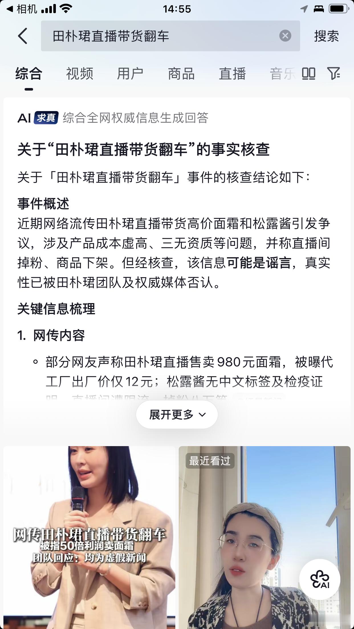 抖音求真:田朴珺直播带货翻车事实核查 可能是虚假新闻,被团队否认