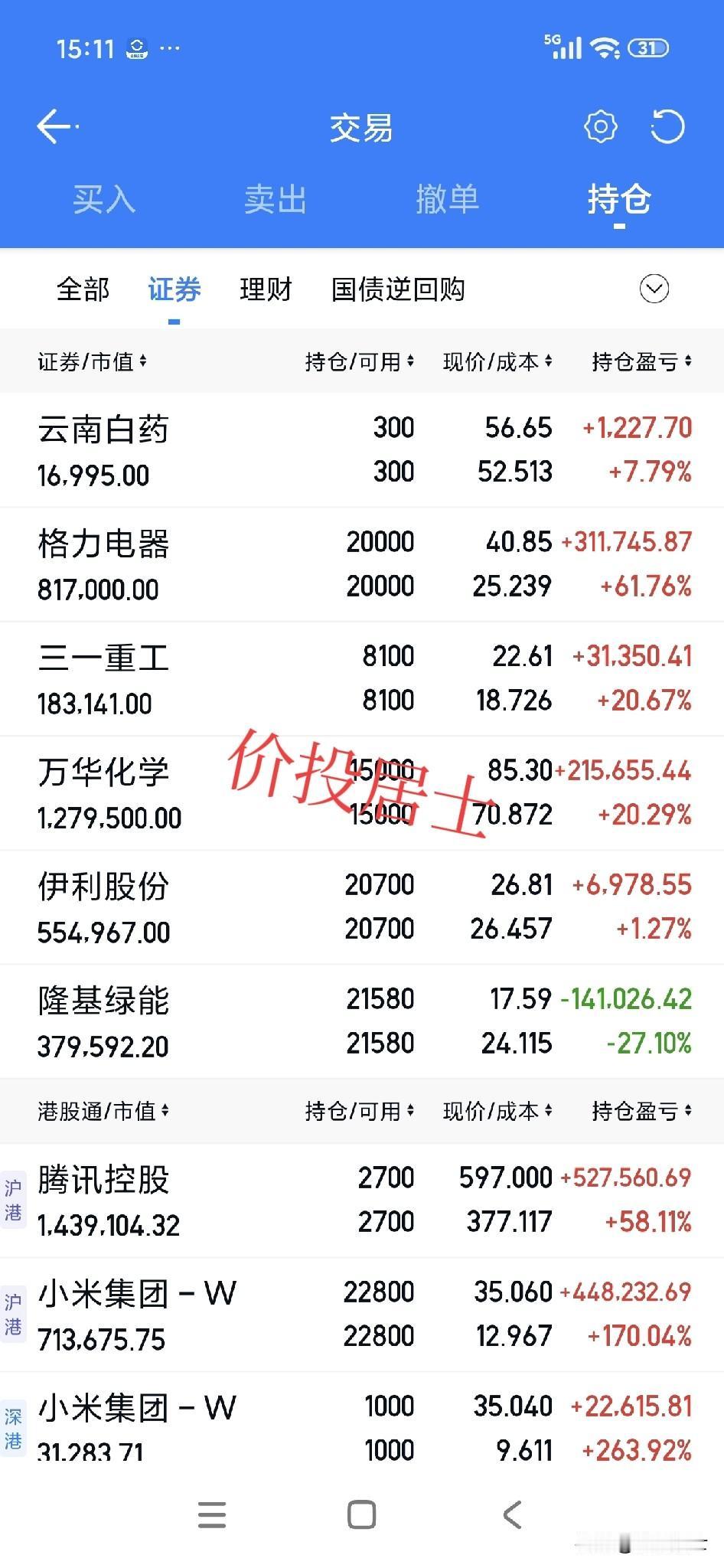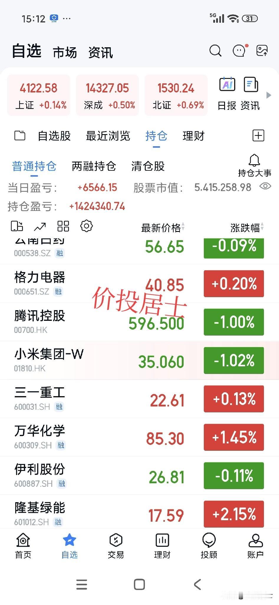 这会A股收盘了,今天小米继续破股价的新低,现在网上看多小米的和看空小米的都越来越激烈,个人依然还是随他去,现在小米自股价高点回撤还没到50%呢[笑哭]据李录说,他投资比亚迪股价回撤超过70%的时候就有两次,这期间巴菲特也持有比亚迪! 所以说价值投资不要光嘴上说说,一些人也不要拿股价回撤说事,我可以负责任的说没有经历过股价大幅度回撤的人,根本都没大幅度赚过钱。做价值投资的遭遇个股股价大幅度回撤太正常了[笑哭] 一个天天讨论股价波动,患得患失的人,我们完全可以推理出此人基本在资本市场就没怎么赚过钱。所以说碰到此类评论我通常是没法恢复,亦或者是礼貌回复。 当然,也有些喜欢生事的人调侃我的实盘股价波动,对此我只能说那也是你们的自由,我依然还是那句话,随它去[笑哭]