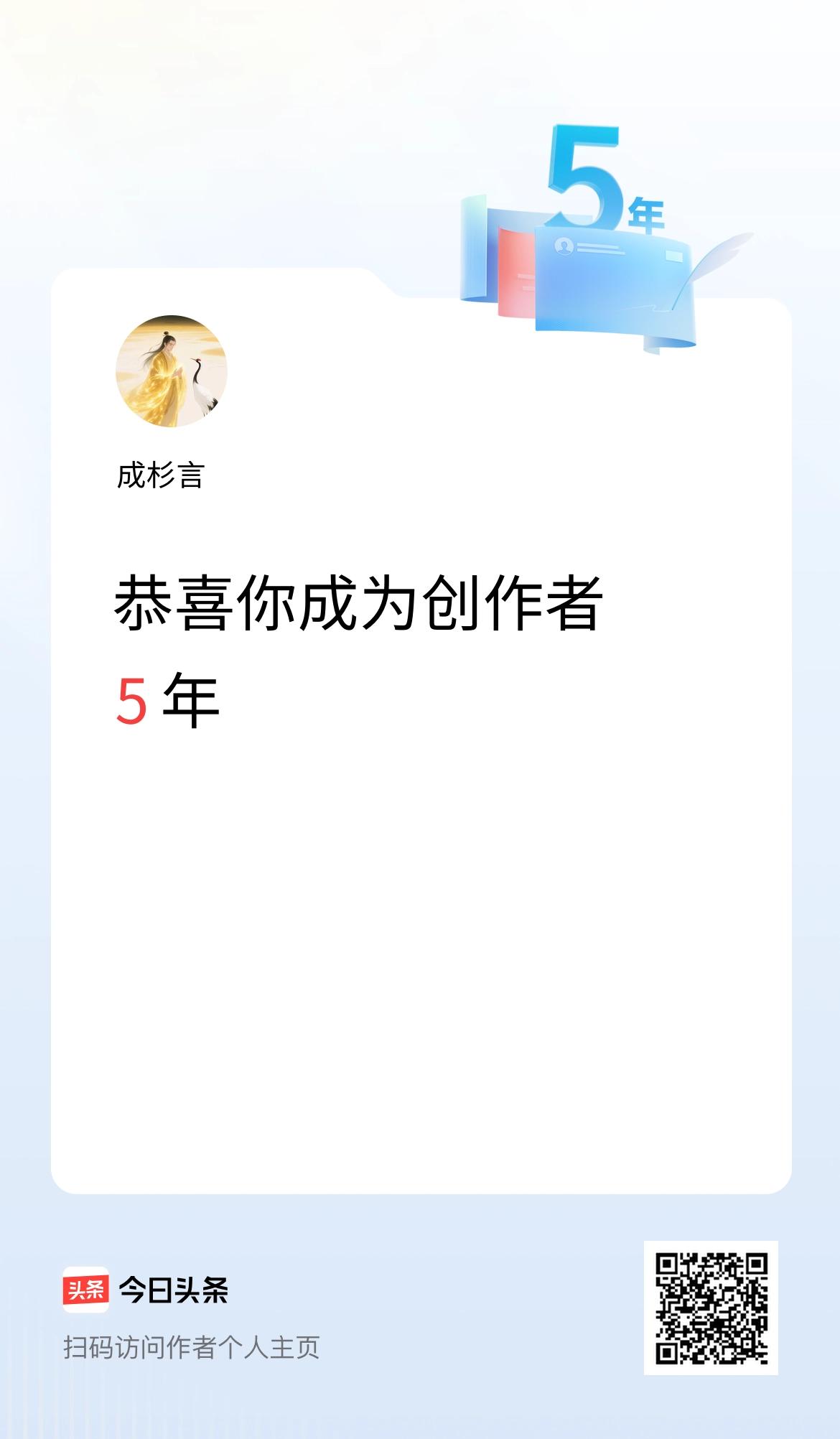 今天是我在头条成为创作者的第5年!