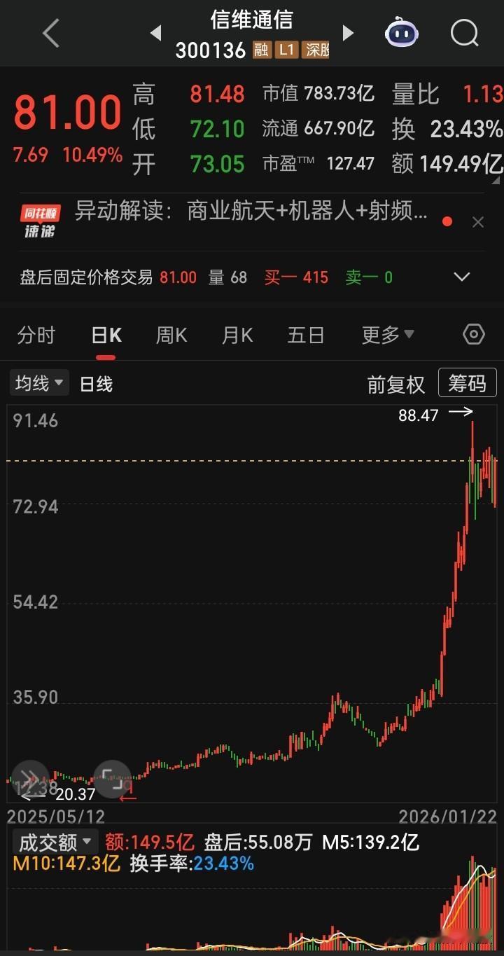 【每日观察,2026.01.22】在总成交额27164亿比上个交易日增量928亿、上涨3577家下跌1777家、涨停92家跌停6家的情况下,谁在成交额前十 中际旭创242.75亿,涨6.72% 澜起科技194.57亿,涨4.92% 航天电子189.30亿,涨6.20% 新易盛 176.14亿,涨3.77% 通富微电162.47亿,跌0.20% 宁德时代158.51亿,跌1.15% 海光信息152.02亿,涨0.14% 信维通信149.49亿,涨10.49% 工业富联137.77亿,涨1.93% 中国长城137.44亿,涨9.43%