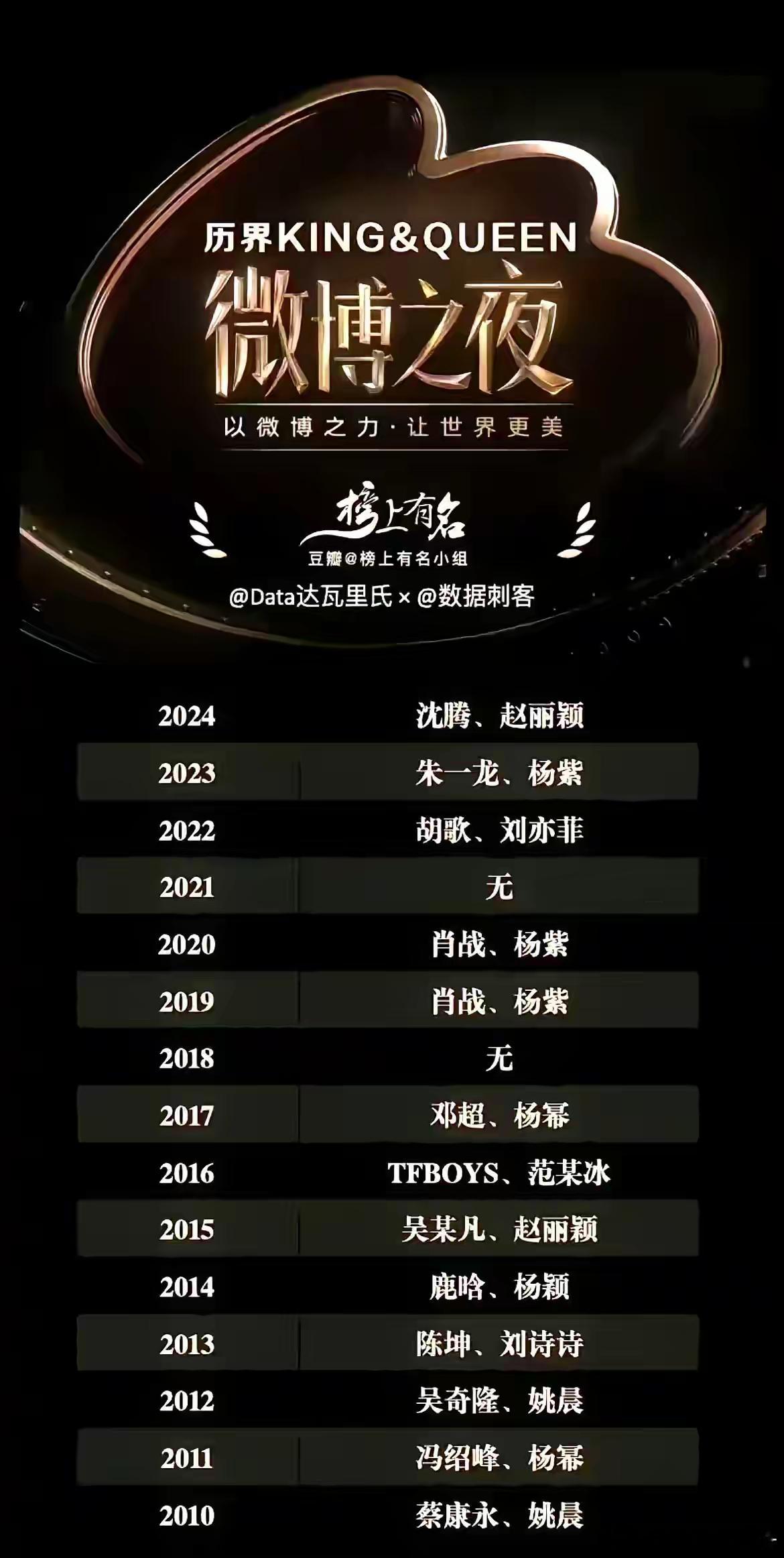 盲猜一下今年微博之夜你心目中的King和Queen会是谁呢?