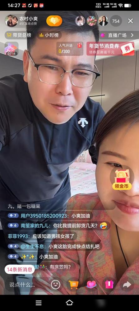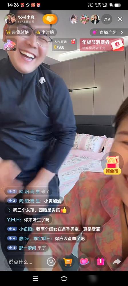 农村小爽直播,本来是卖货,但是粉丝们还是对小爽四胎是男是女比较好奇,聊着聊着,小