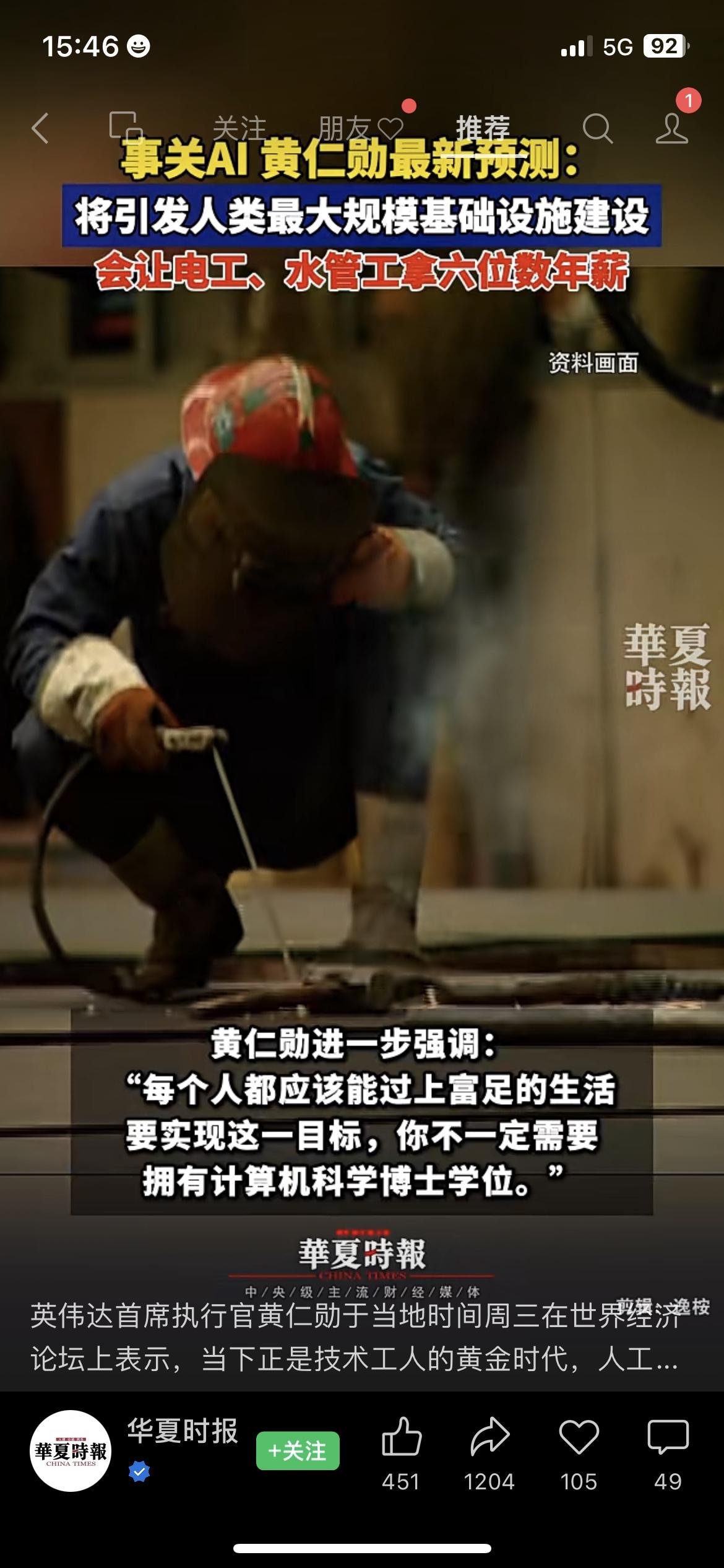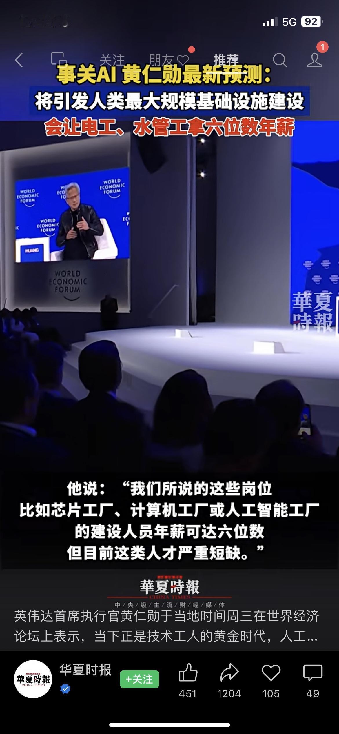 黄仁勋放狠话!AI基建潮让水电工年入百万? 达沃斯论坛他直言美国技术工薪资翻一倍,六位数年薪遍地是!我做装修的表哥接数据中心活,工价直接涨30%,一天能挣800块!这波是真风口还是纯噱头?硬核科技