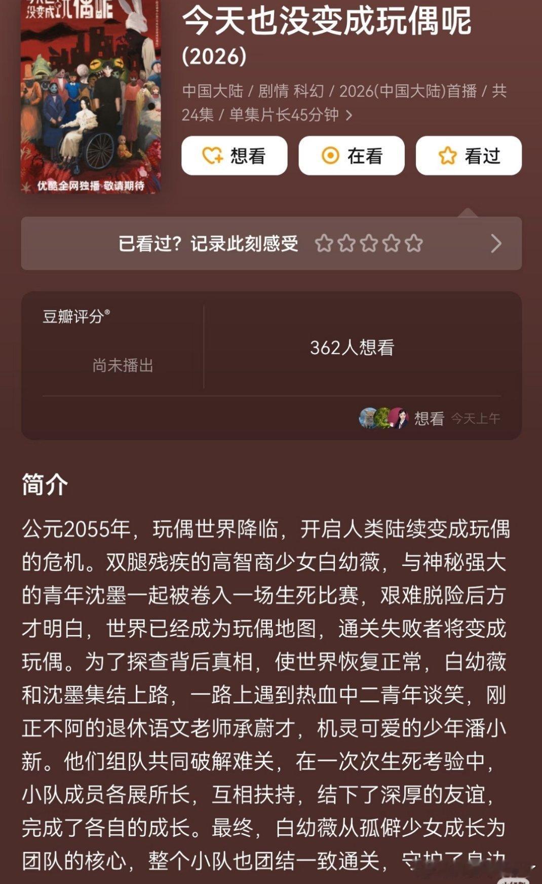 🍉《今天也没变成玩偶呢》:陈都灵、陈靖可看简介女主从刚出场就是团队核心,不是最后才成长起来的,蹲一个官宣