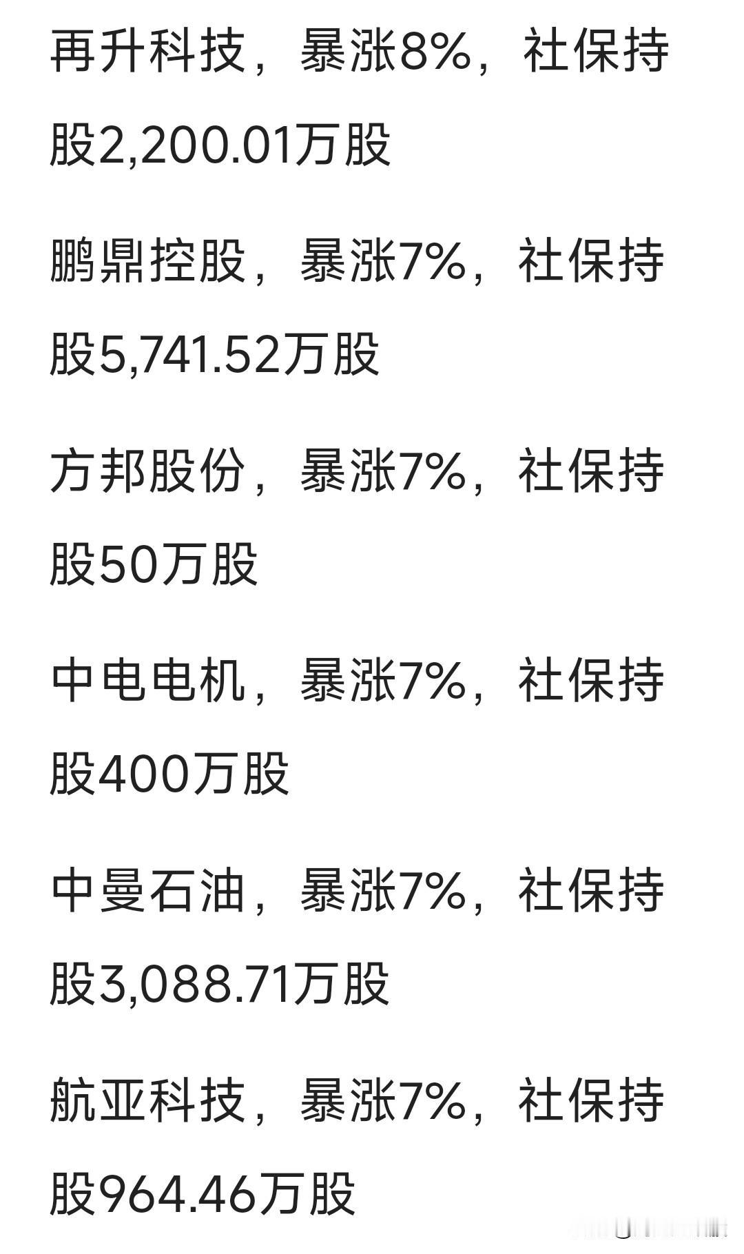 【社保基金重仓股复盘】社保基金买进公司前十大股东的股票中,今日大涨公司特别多,汇总如下图。 关注“刘姥姥”,精彩分享真不少(麻烦亲们:点赞,收藏,分享)。 特别提醒:本文涉及内容及个股,仅供交流与参考,不是荐股,不得以此作为买卖依据,盈亏自负。基金加仓榜 社保帐户明细 社保大基金