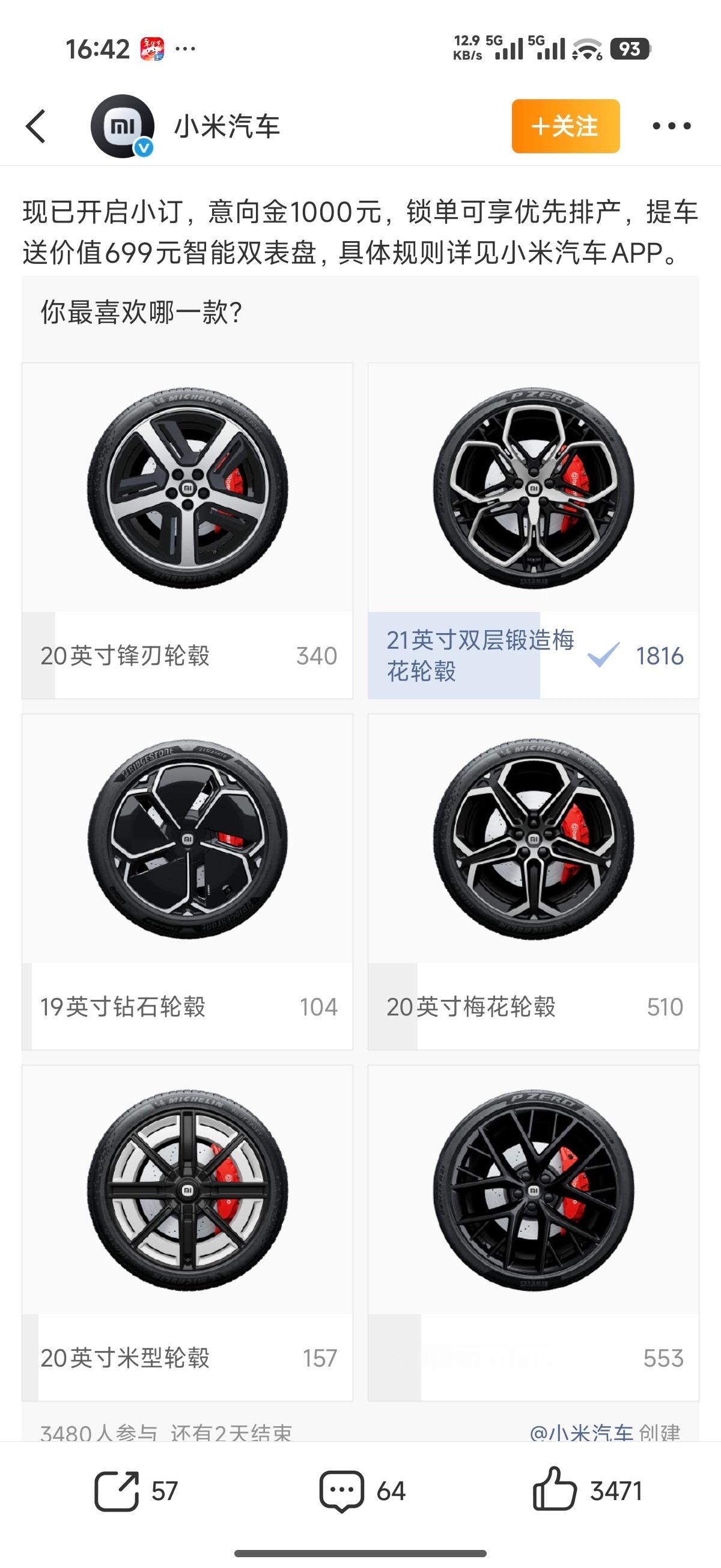 新一代su7这个21寸梅花轮毂好看的有点不真实