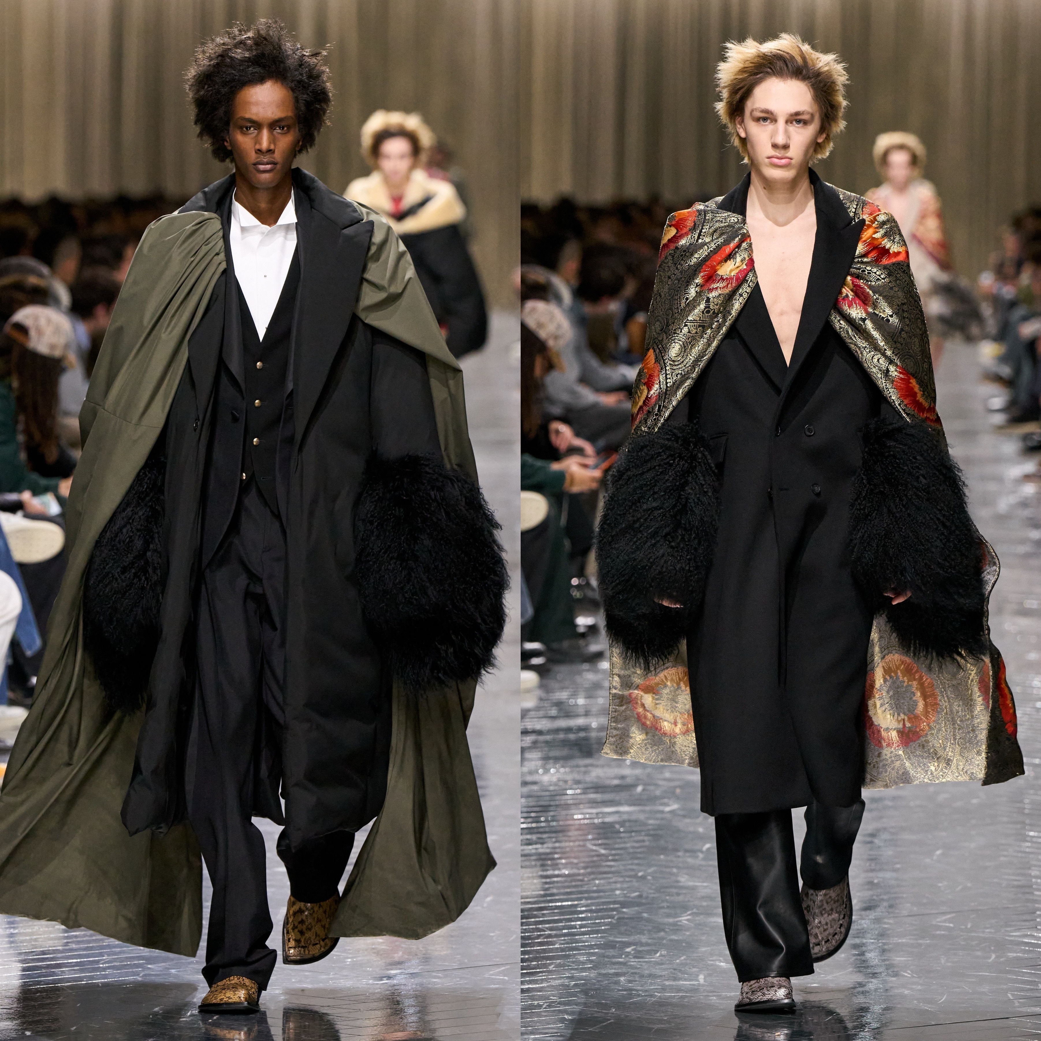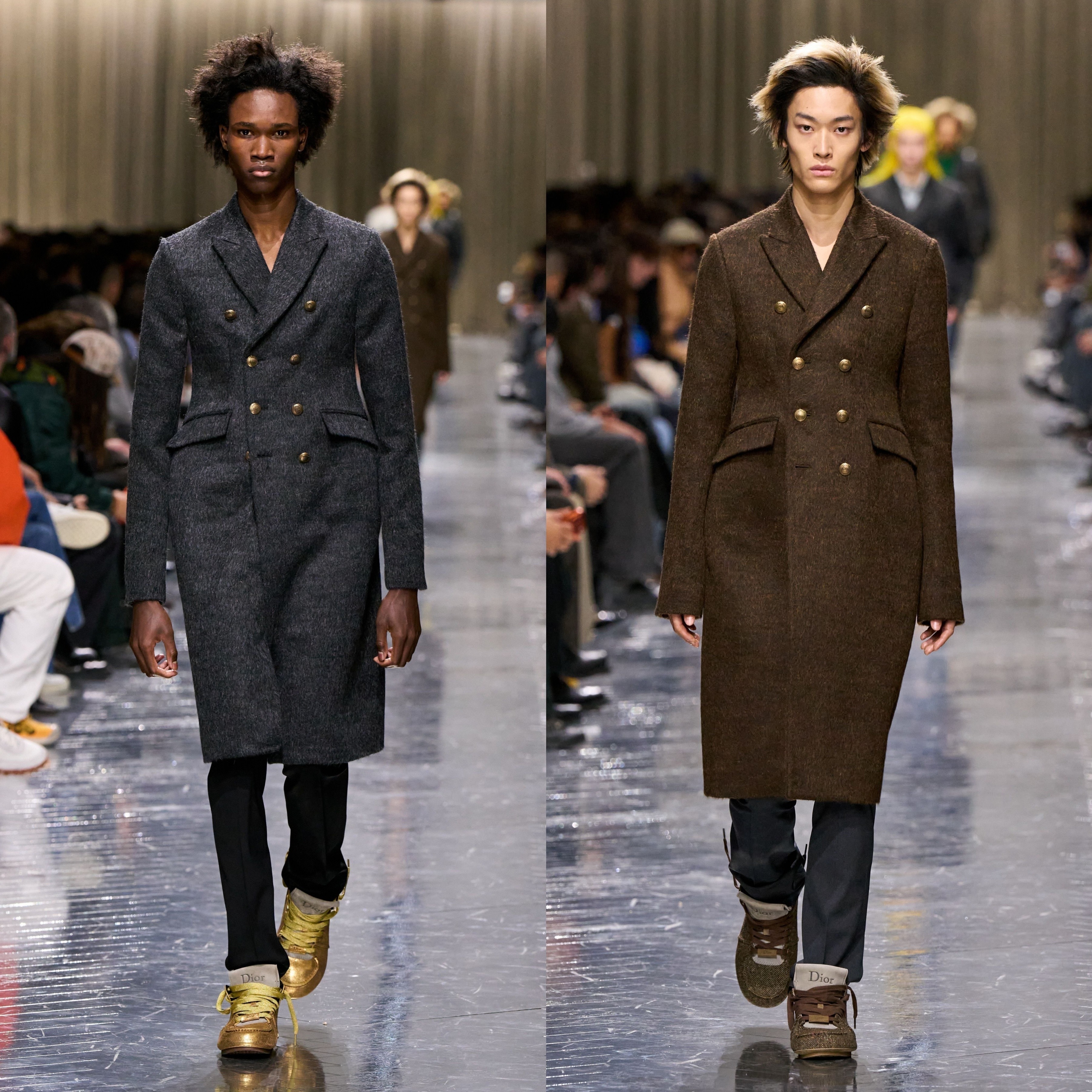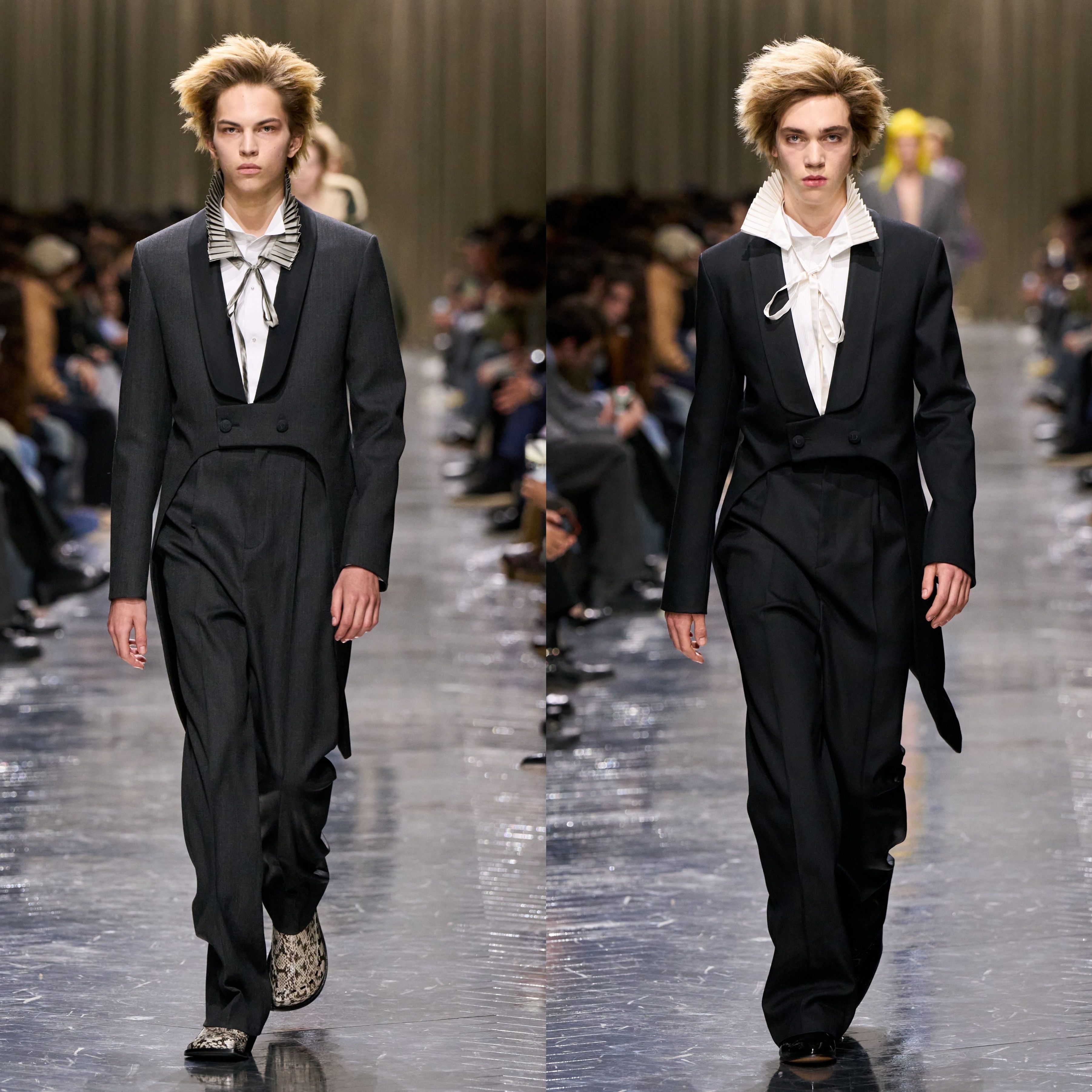 Dior男装秀风格新章迪奥二零二六冬季秀中 ,创意总监 Jonathan Anderson 以反叛与传承交织的设计 ,为 Dior 男装写下风格新章 。他将保罗·波烈的跨文化灵感与 Dior 经典基因相融 ,用多元材质铺陈质感层次 ,多尼戈尔粗花呢的质朴 、天鹅绒的莹润与提花织锦的瑰丽交织 ,刺绣钉珠与流苏穗饰点缀 ,在克制色调中迸发全新视觉张力 。品牌精神的传递同样暗藏巧思 ,既以 Dior 标志性的结构主义剪裁为骨架 ,将波烈的跨文化松弛感与戏剧张力注入利落线条 ,又通过盾徽印花 、改良版 New Look 廓形 、经典 Bar Jacket 等元素深植品牌典藏基因 ,大胆打破传统男装的性别边界与比例桎梏 ,以反叛却不失优雅的姿态 ,让经典在当代语境中焕然新生 。迪奥品牌大使 以一身全新冬季男装系列未发布麂皮风衣造型亮相秀场 ,再次见证 Dior 风格的革新与突破 !