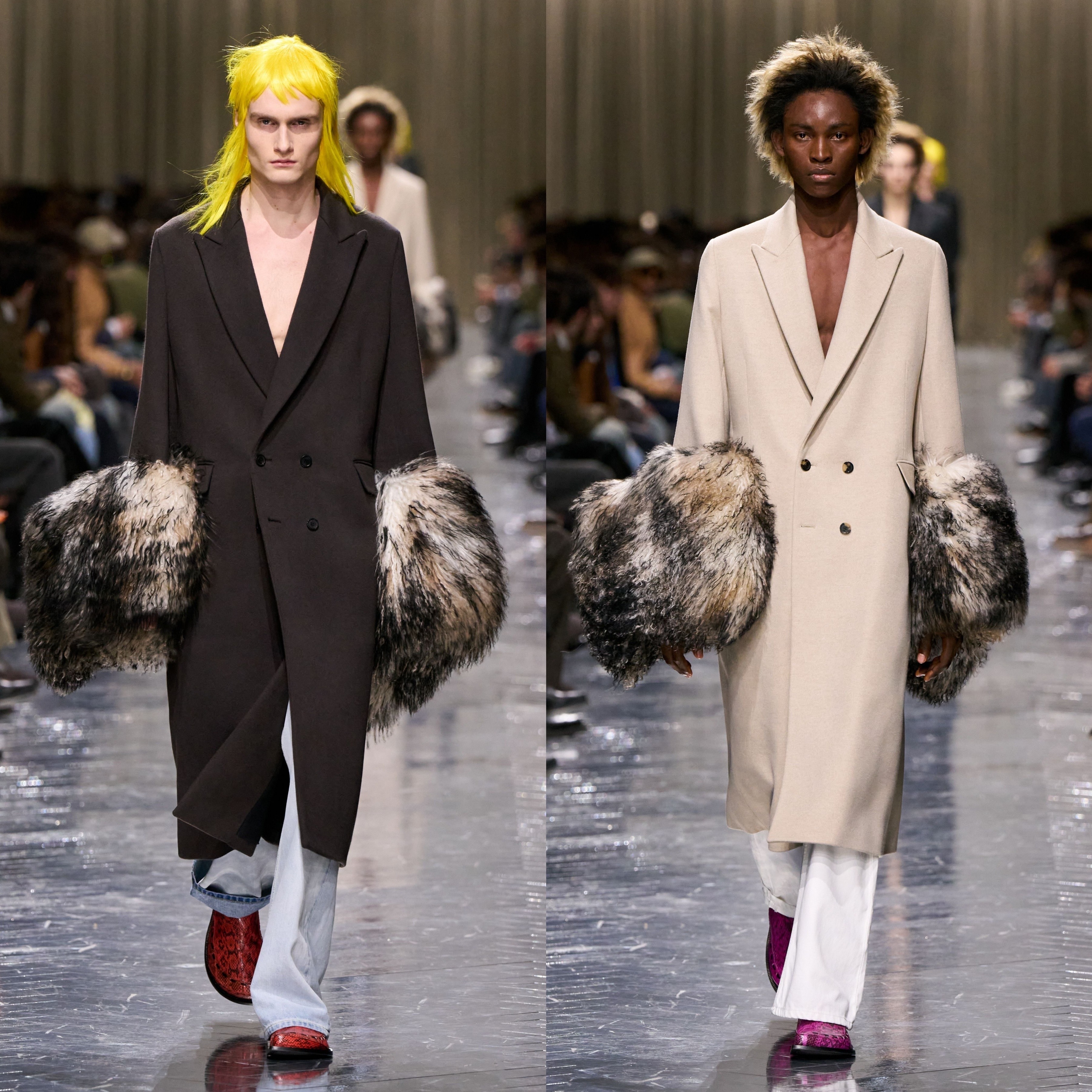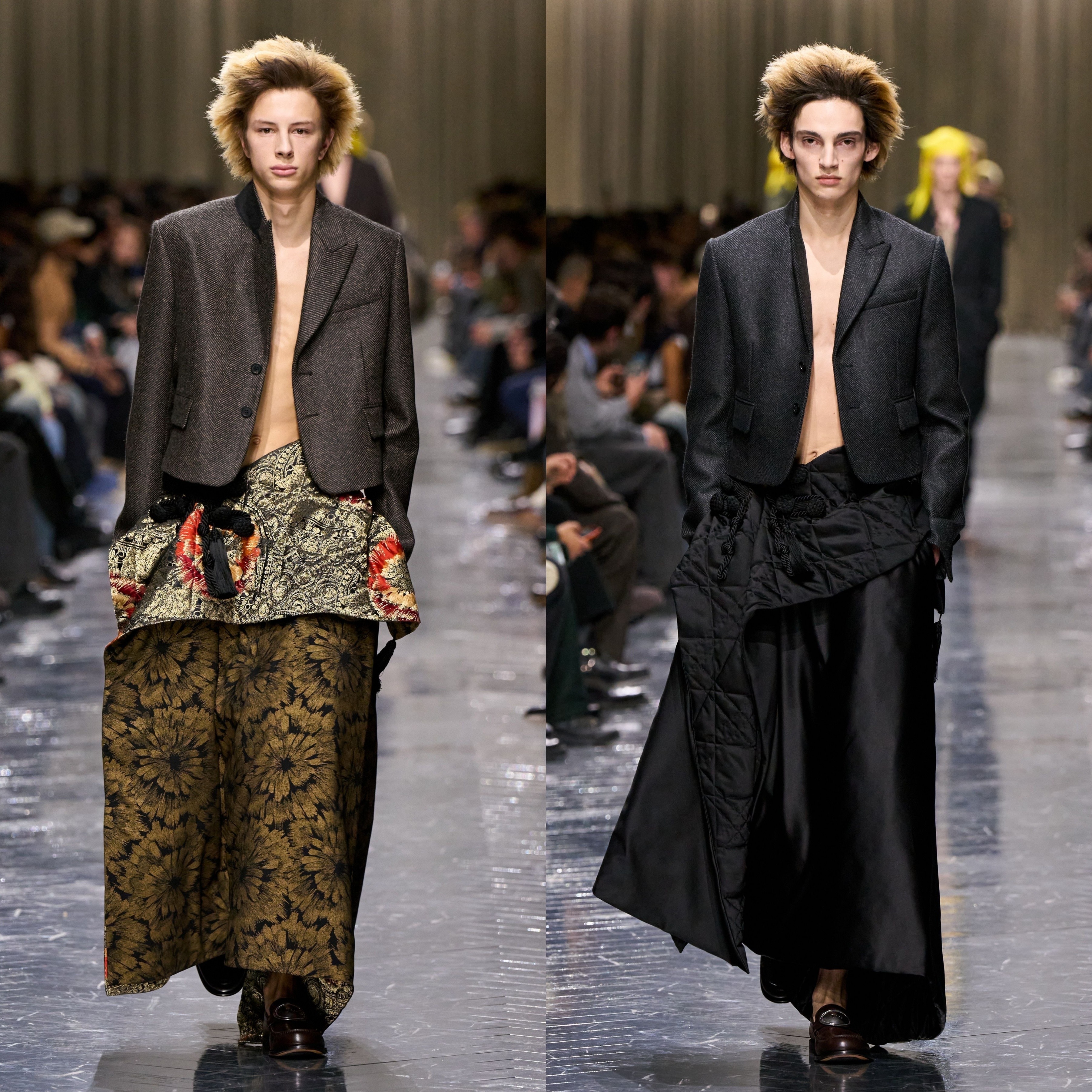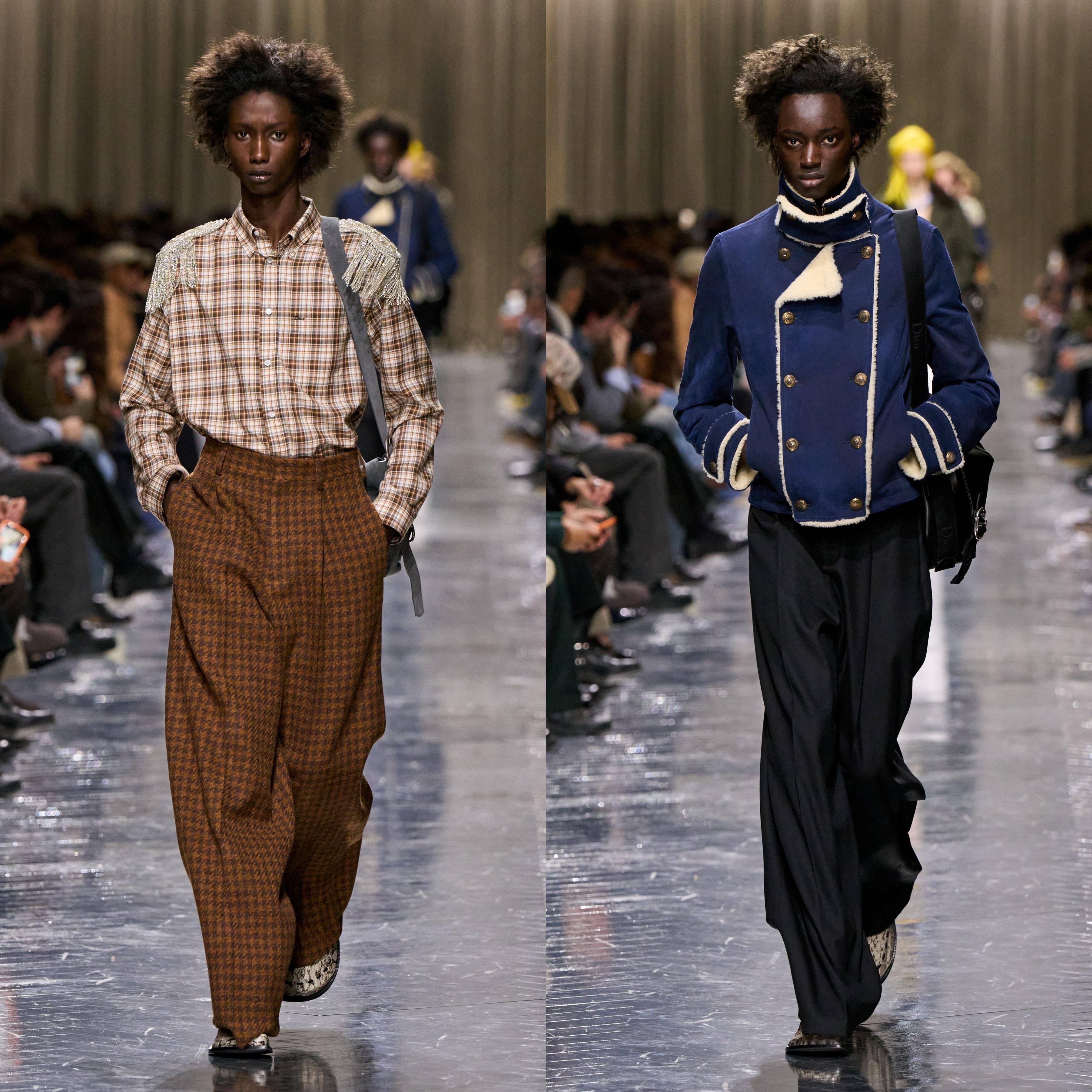 Dior男装秀风格新章迪奥二零二六冬季秀中 ,创意总监 Jonathan Anderson 以反叛与传承交织的设计 ,为 Dior 男装写下风格新章 。他将保罗·波烈的跨文化灵感与 Dior 经典基因相融 ,用多元材质铺陈质感层次 ,多尼戈尔粗花呢的质朴 、天鹅绒的莹润与提花织锦的瑰丽交织 ,刺绣钉珠与流苏穗饰点缀 ,在克制色调中迸发全新视觉张力 。品牌精神的传递同样暗藏巧思 ,既以 Dior 标志性的结构主义剪裁为骨架 ,将波烈的跨文化松弛感与戏剧张力注入利落线条 ,又通过盾徽印花 、改良版 New Look 廓形 、经典 Bar Jacket 等元素深植品牌典藏基因 ,大胆打破传统男装的性别边界与比例桎梏 ,以反叛却不失优雅的姿态 ,让经典在当代语境中焕然新生 。迪奥品牌大使 以一身全新冬季男装系列未发布麂皮风衣造型亮相秀场 ,再次见证 Dior 风格的革新与突破 !