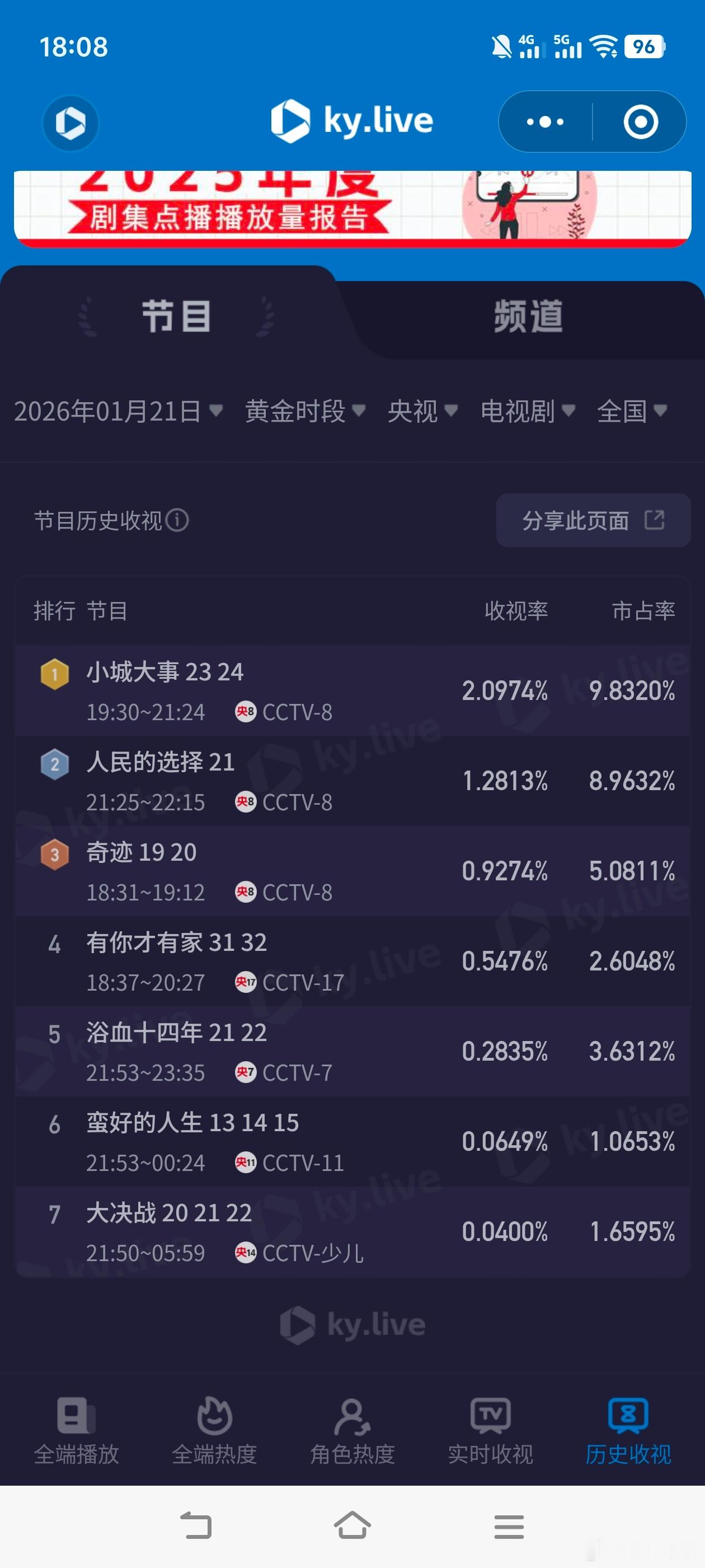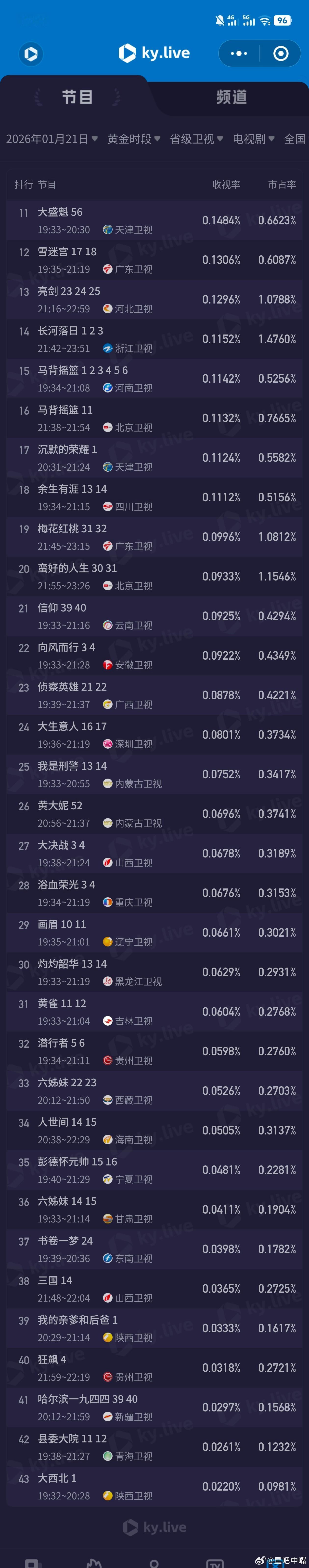 黄晓明剧宣有多努力1月21日cvb收视日报小城大事1.770,酷云2.0974,