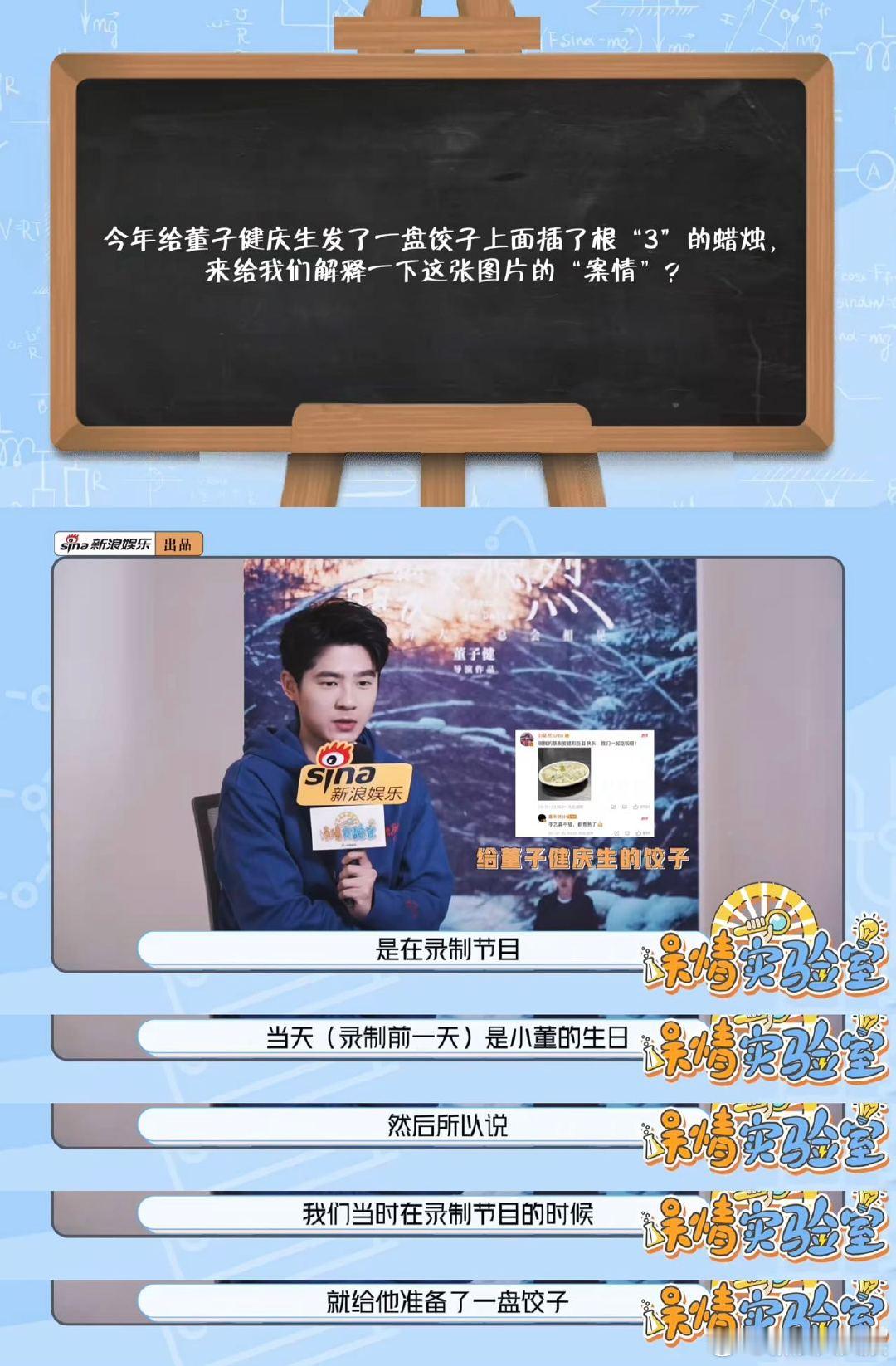 刘昊然吃上东北红肠了 刘昊然用饺子给董子健庆生的原因 做客新浪娱乐出品《娱情实验室》先导片上线 提到在《一日光影记录》里买了冻柿子,回家化开吃了,结果一直拉肚子还收到了早市上没舍得买的红肠,终于可以好好品鉴一下了!