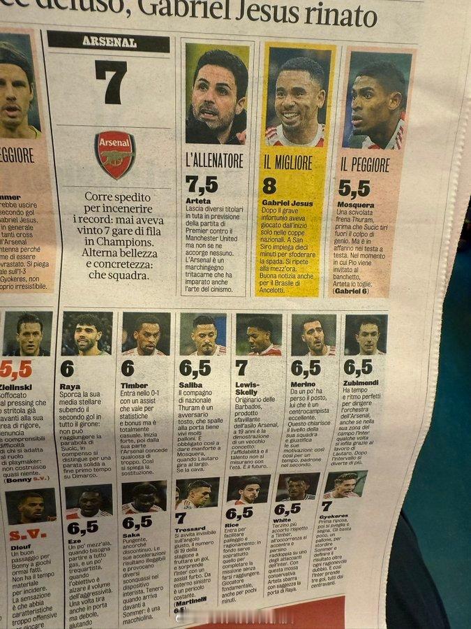 《米兰体育报》将克里斯蒂安·莫斯克拉评为当晚阿森纳表现最差的球员,仅给5.5分。这评分似乎太苛刻了。我认为他是除了热苏斯之外阿森纳表现最好的球员,他对图拉姆和埃斯波西托的防守都非常出色 国际米兰1比3阿森纳 阿森纳著名教授