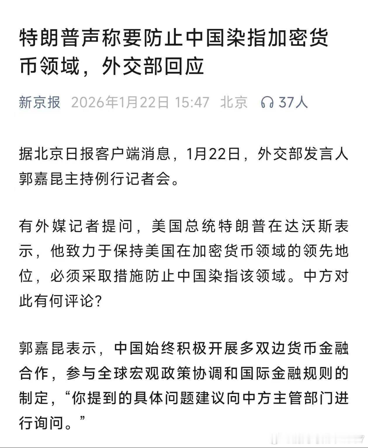 特朗普声称要防止中国染指加密货币领域我们不屑!呸!