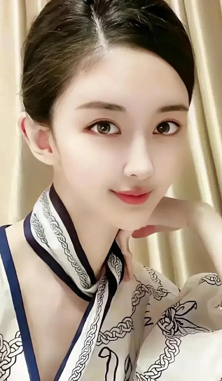 青缎如漾,绣着粉花轻绽,眉眼间的温柔恰似江南春水,自带一份雅致又清甜的东方韵味?