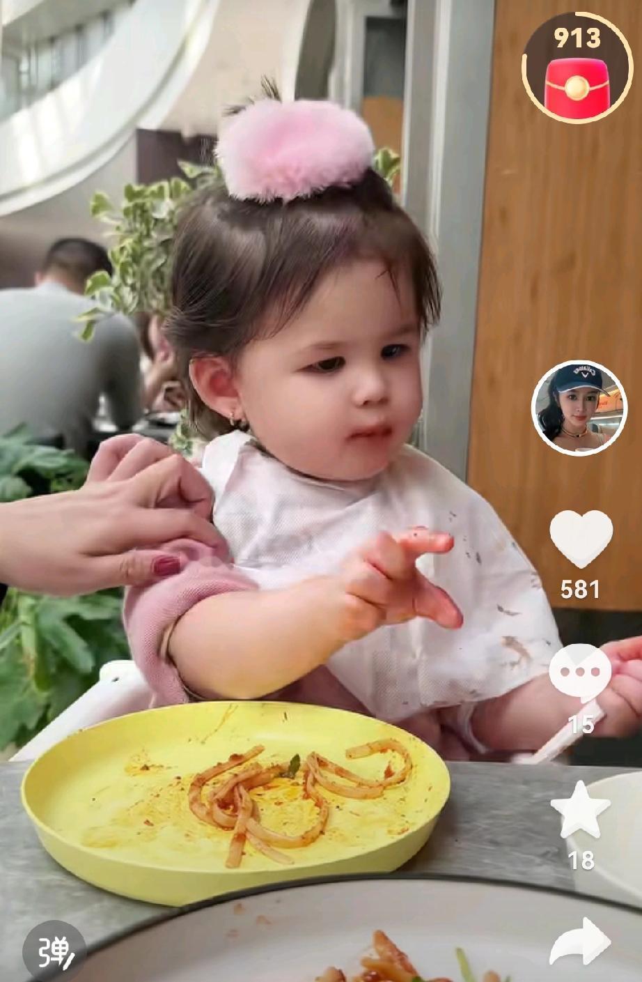 小凯莉喜欢吃面条,上手抓饭的姿势挺可爱。[比心][比心][比心]