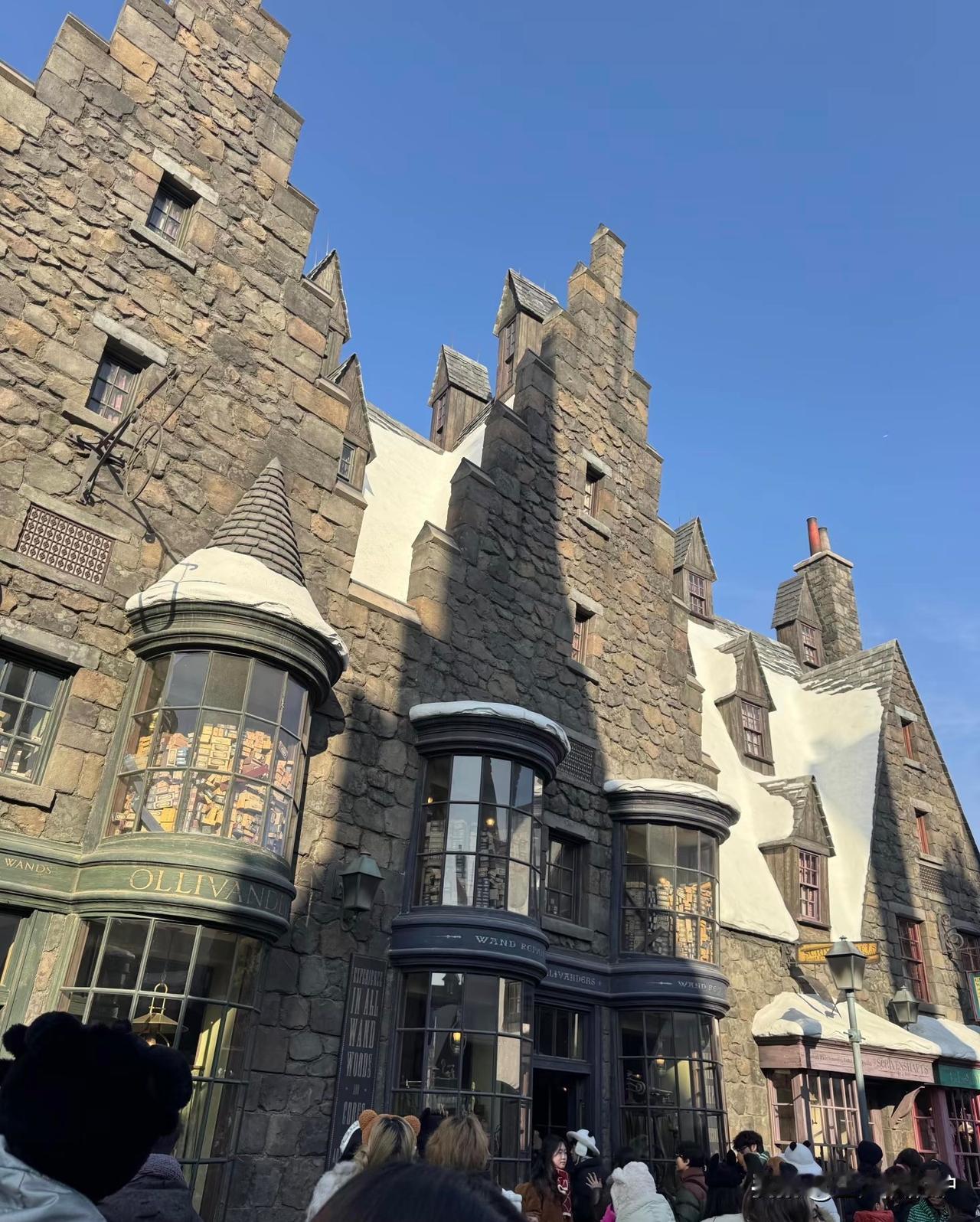 冬天来环球真的太亏了!零下12度的天,直接关了好几个热门户外项目,霸天虎过山车、飞跃侏罗纪全歇菜,连能看落日城堡的鹰马飞行也没得上,最意难平的是未来水世界演出也没了,我都做好被冷水喷的准备了,结果直接落空 更离谱的是花车巡游直接取消,换成了角色见面会,本以为能看到热闹阵容,结果就3个角色加几个小黄人工作人员,一共才4组,几分钟就结束了,落差感拉满!400多的票价,感觉250都嫌多,难怪六点多看完第一场灯光秀,一大半人直接出园了,实在没东西可玩。 天冷到所有人都窝在餐厅里,看攻略避峰3点多去三把扫帚,结果直接排队截止,当时人都傻了!零下十几度风吹得脸生疼,为了出片硬是排20分钟拍网红小车,也敢花90分钟在户外排队买黄油啤酒拍照,最后折腾一小时才到手,算比预想的强点。 上租的魔法袍四件套送到附近酒店,天冷穿脱外套巨麻烦,黄油啤酒冰的是真好喝,但在室外喝纯靠勇气就是越喝越甜,不爱甜食的姐妹慎冲! 开园本来想冲禁忌之旅,零下的天跑步是真要命,跑半道就歇菜,还好开园前排队5分钟,到我这还是5分钟,算捡漏了。禁忌之旅晃动幅度比飞跃地平线大,但不至于晕车,变形金刚那个3D项目才是真晕,撞车那一下直接差点yue出来,发现好几个项目都是同款形式,无非是跟着哈利波特、擎天柱还是小黄人飞罢了。 禁忌之旅出来灵光一现,想着人少赶紧拍哈利波特同款照,没做攻略瞎找,往侏罗纪方向走,快到门口拐进一个巷子居然就是赫敏跑的打卡点,运气直接拉满!跑三次几分钟搞定,下午再去就排长队了,建议不着急冲项目的姐妹,开园先拍照,人少巨省时间,小黄人那边也是,每个点位晚了都要排队。 不过天冷也有唯一优势:人巨少!下午园区才1.5w人,各个项目排队时间都不长,下午再刷禁忌之旅也就35分钟。反而室内项目人扎堆,排最久的是功夫熊猫灯影传奇,要45分钟,估计平时拍照点位排队人会更多。 变形金刚互动没遇到威震天和擎天柱,十点半就刷完三个热门项目,蹲到11点成当天第一个互动的,结果是个不认识的小姐姐天寒地冻排半天属实没必要,不如看准角色再冲,20分钟就换角色,白等太亏了!