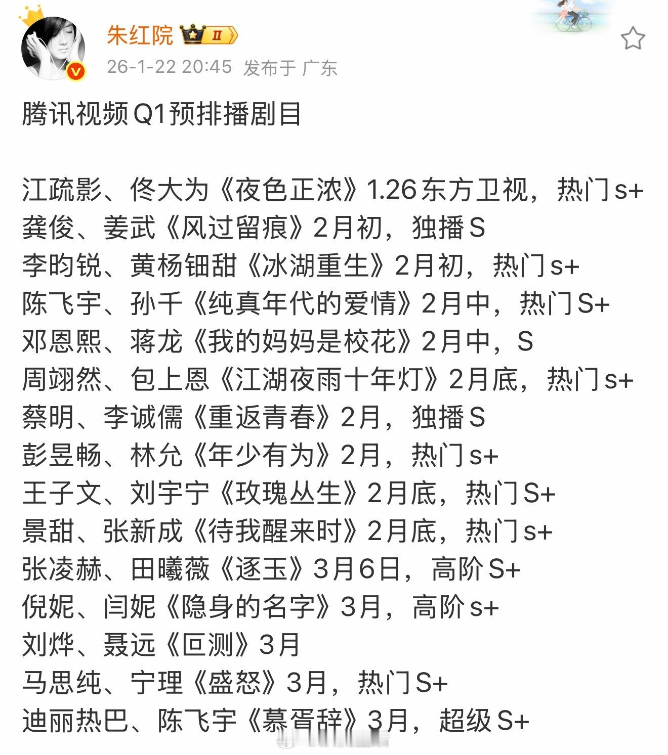 我要被各种头衔的S项目搞晕了,大家看好腾讯视频Q1季度的哪部剧呀?