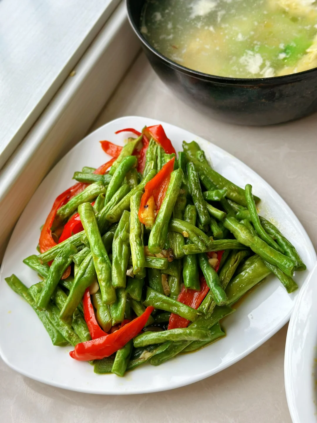 5. 尝一下看看需不需要再放盐再放入适量鸡粉如果你们喜欢吃辣的话建议再多放一点辣椒面进去会更香出锅前放入多一点的蒜苗段哦
