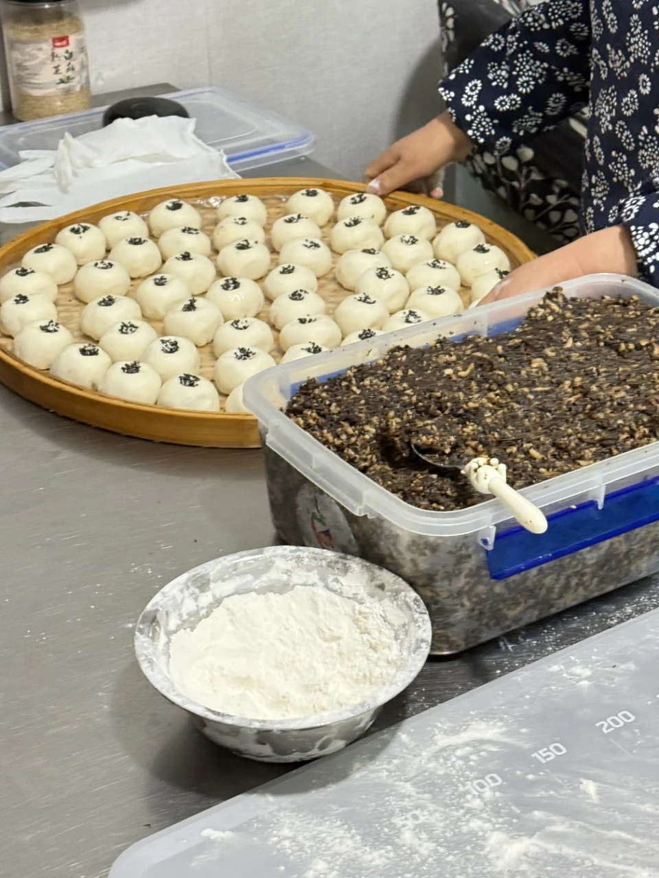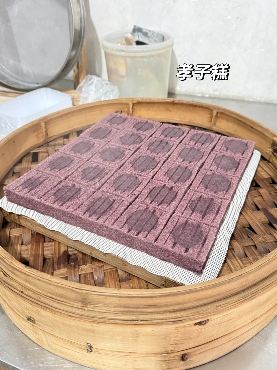 主要食材为糯米粉或黑米粉,馅料通常为豆沙,纯手工制作,零添加。蒸好的糕点,口感松软香甜,老少皆宜。