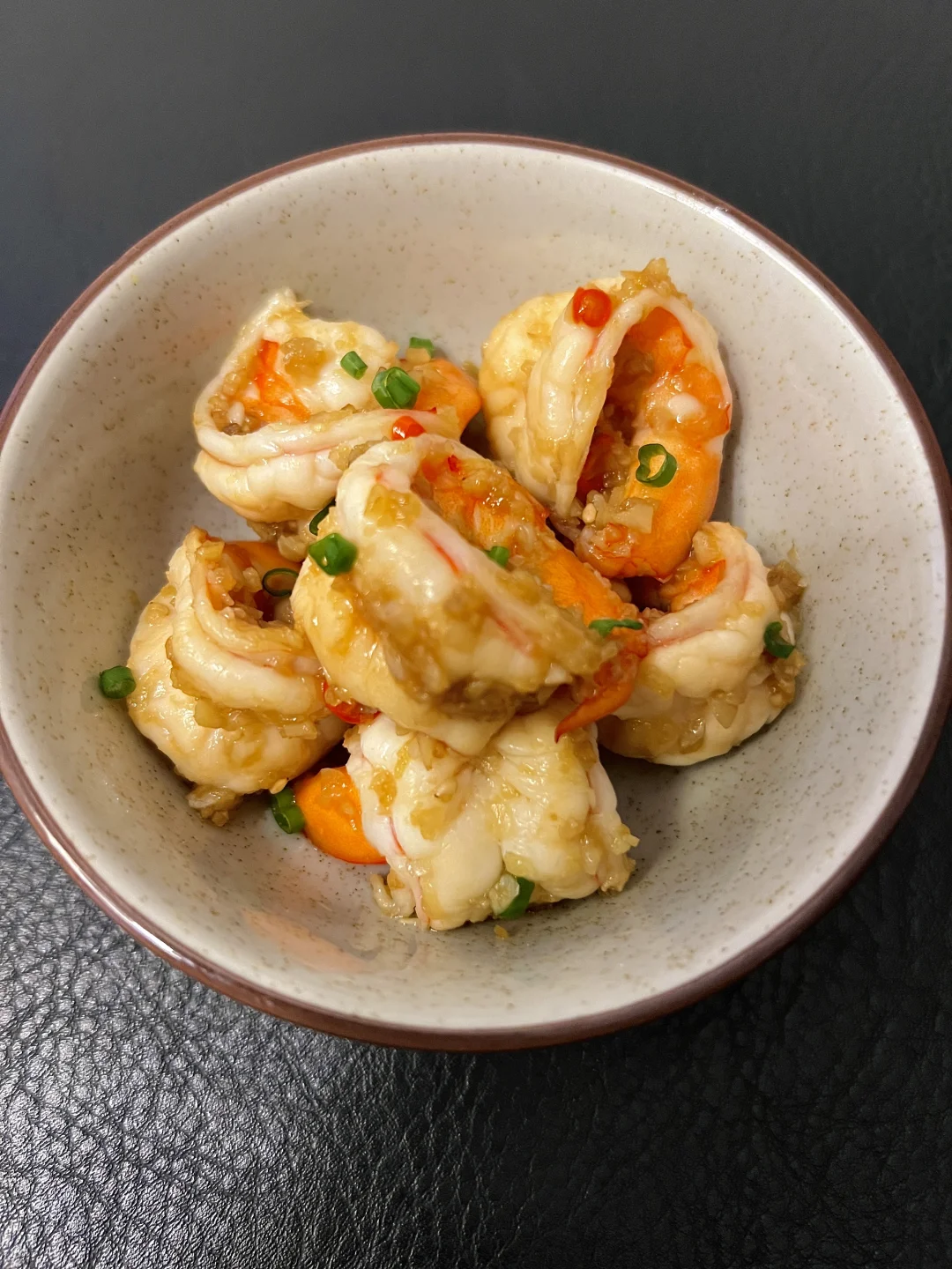 ❶大虾处理干净 焯水备用 蒜末小米辣备用