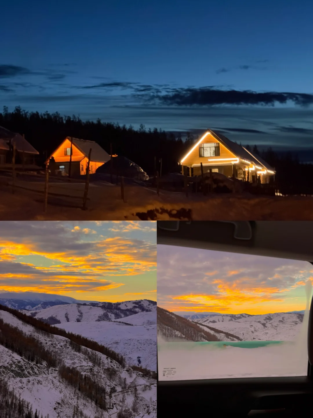这次为期8天的北疆冬日赏雪阿勒泰之旅路线为: 🗺️白哈巴—喀纳斯—禾木—阿勒泰—赛里木湖—伊宁 第1️⃣站来到新疆安静的边境小村白哈巴村 白哈巴被誉为 “西北第1️⃣村” 与哈萨克斯坦仅一沟之隔 相较于热闹的禾木村,这里人少安静 - 📸景点(详细介绍见下方合集) Day1️⃣✈️中午落地阿勒泰🚗白哈巴 🔹中哈边境大峡谷 去村里的必经之地,开到这正好是日落时分,观景台俯瞰蜿蜒峡谷,对面就是哈萨克斯坦的山峦 🔹孤独的树 进村后直奔这里拍蓝调时刻,记得带提灯当道具噢!超级出片 Day2️⃣ 🔹巴依巴特观景平台 这里看日出绝美,运气好可以看到“时空之门”光束。平台上还有网红秋千,荡着秋千俯瞰整个白哈巴村超出片,不过需要爬20分钟木栈道上去 🔹西北第1️⃣村石碑 靠近白哈巴村西入口处的经典地标,可以俯瞰网红S弯公路,如果是一日游可以直接安排在进村后的第1️⃣站a再去孤独的树 🔹雪山网红S弯 石碑旁边的绝美弯道,以为木屋、雪山为背景,轻松拍出氛围感大片 - 🏨住宿 🔹白哈巴山海归宿 民宿整体是黑白色调搭配原木的简约设计 每个角落都长在审美上 尤其是几何线条的三角屋顶和大片方形窗 窗外就是白茫茫的雪景 🔹云禾山居 堪比北欧般的圣诞木屋 院落里布置着圣诞老人、毛绒小熊和各种圣诞装饰 来这拍圣诞照片超级有氛围感 - 🍽️餐厅/咖啡店 🔹夜雨—好吃,大盘鸡、手撕羊肉都超大份很满足 🔹慢渡—❌避雷 🔹山咖咖—位于山海归宿里面,日落后的蓝调时刻在这里拍剪影简直绝了 🔹塔尔吧—位于塔尔民宿里面,烤馕咖啡很好喝 - 💡冬日北疆Tips 🔹零下几十度真的超级冷!保暖和防晒都要做足!暖宝宝、加热鞋垫和防滑冰爪记得带 🔹气温过低手机耗电快,记得给手机也贴个暖宝宝 🔹前往白哈巴需要提前办理边防通行证,从阿勒泰去白哈巴路上经过的“喀纳斯游客中心”就可以办理,5分钟搞定 🔹白哈巴属于边境,🈲止使用无人机哦 🔹冬季通常需要包车前往,山路很多很危险,一定要找熟悉路况的当地司机 🔹山路冬季事故多发,会导致几公里的交通堵塞,行程安排一定要预留充足时间