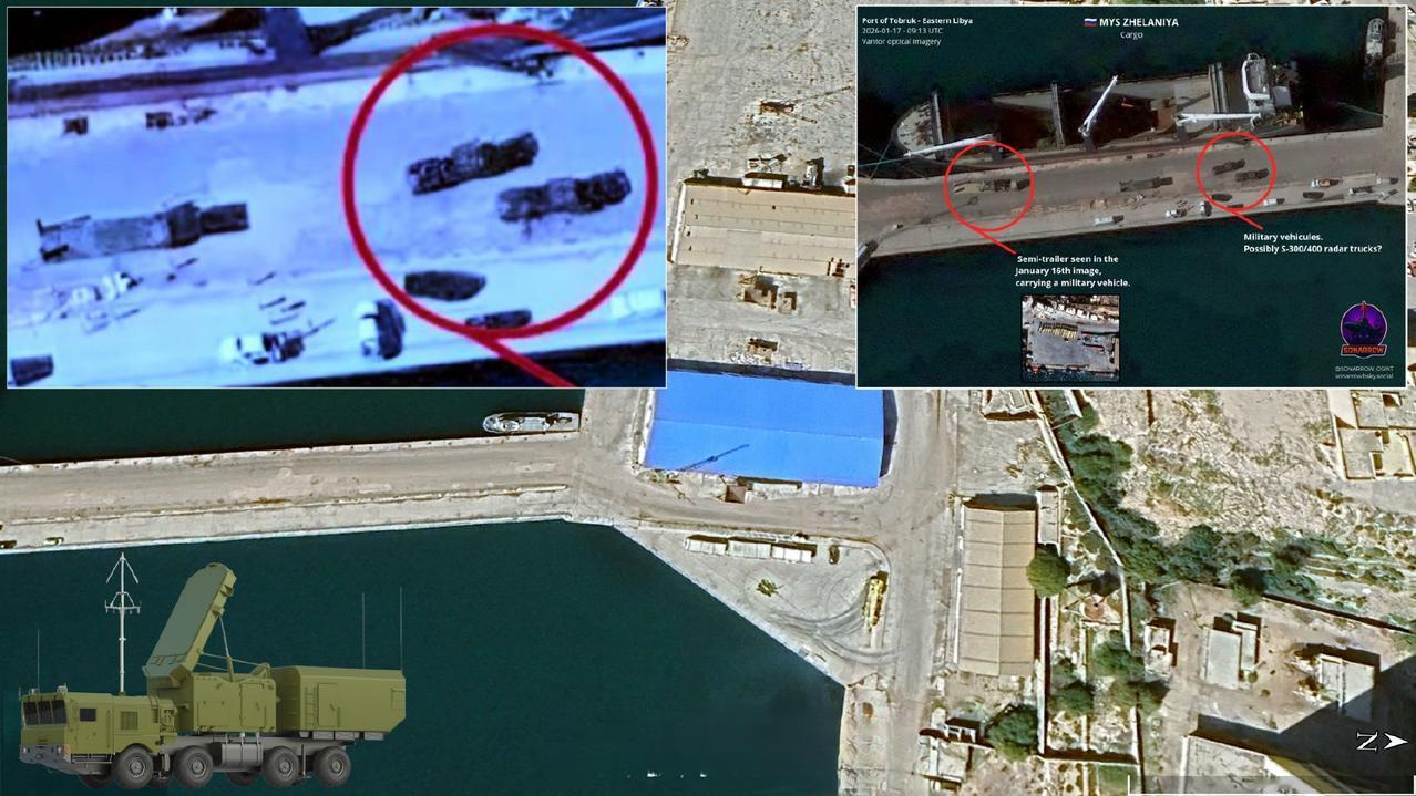 卫星图像显示,停靠在利比亚托布鲁克港的俄罗斯货船疑似运输了S-400防空系统。