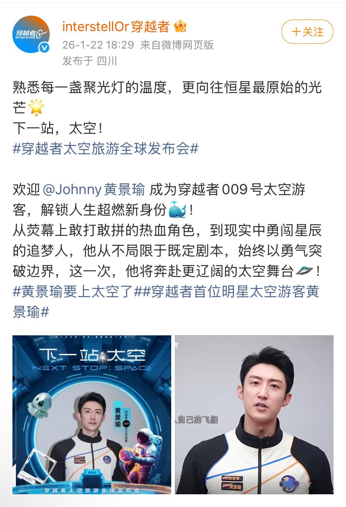 黄景瑜是真的要上太空了吗???
