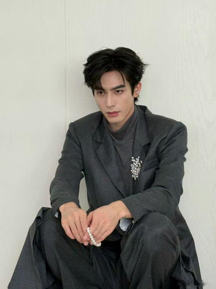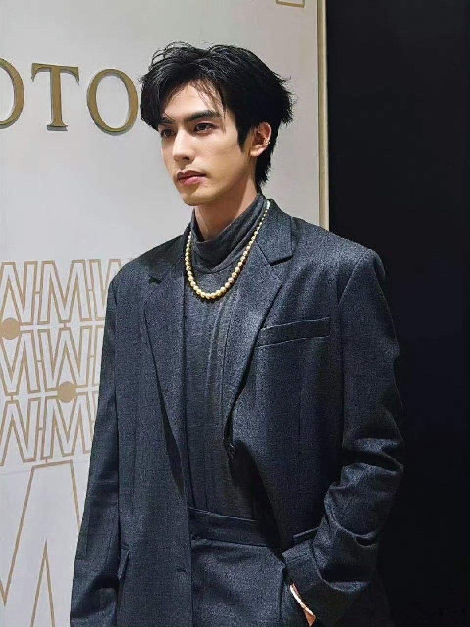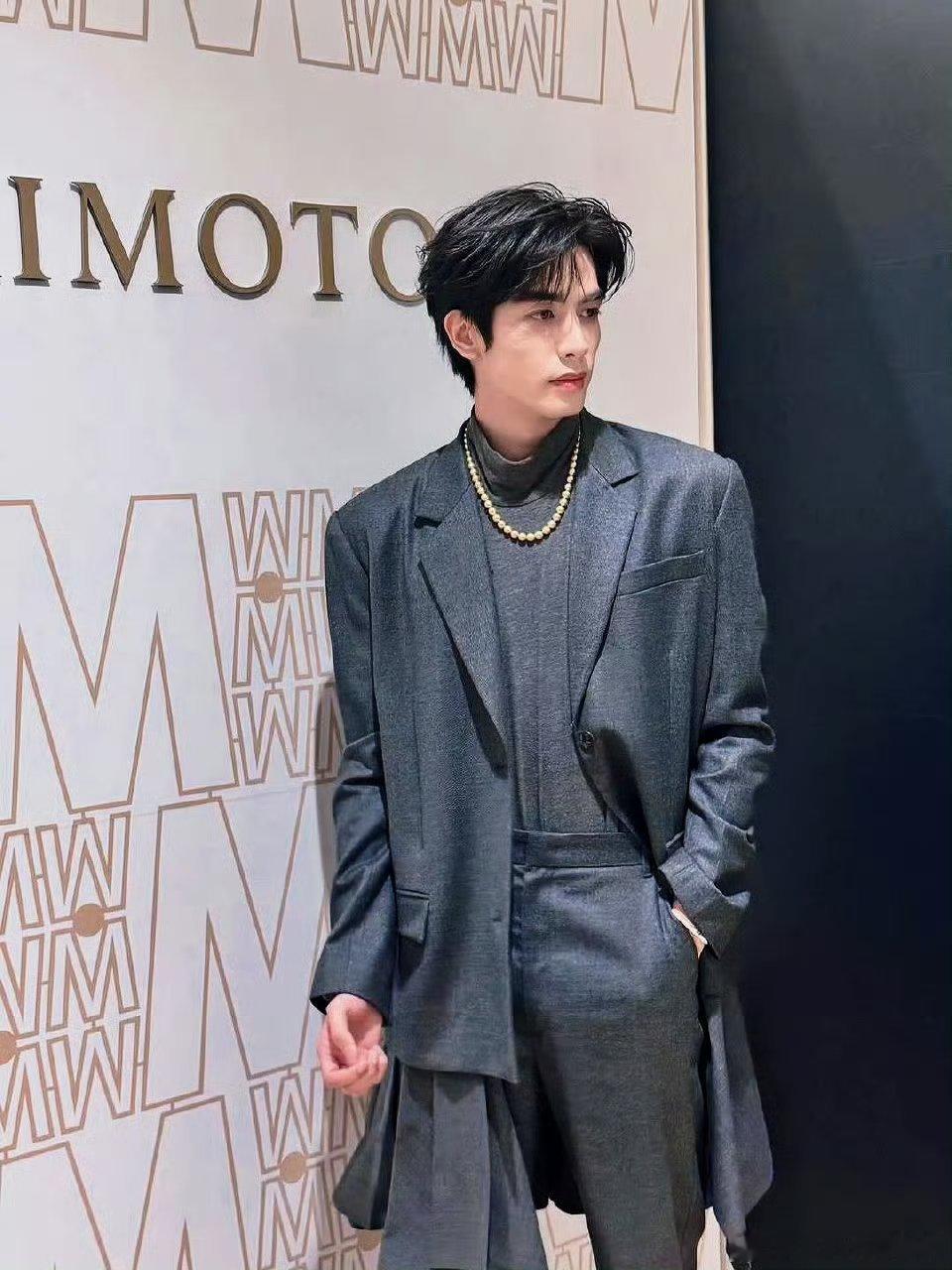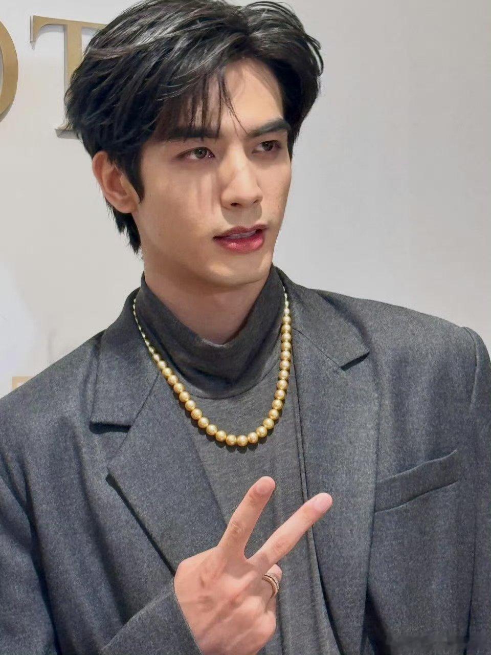 宋威龙今天MIKIMOTO品牌活动,灰西装配珍珠项链胸针,刚中带柔珍珠美男宋威龙