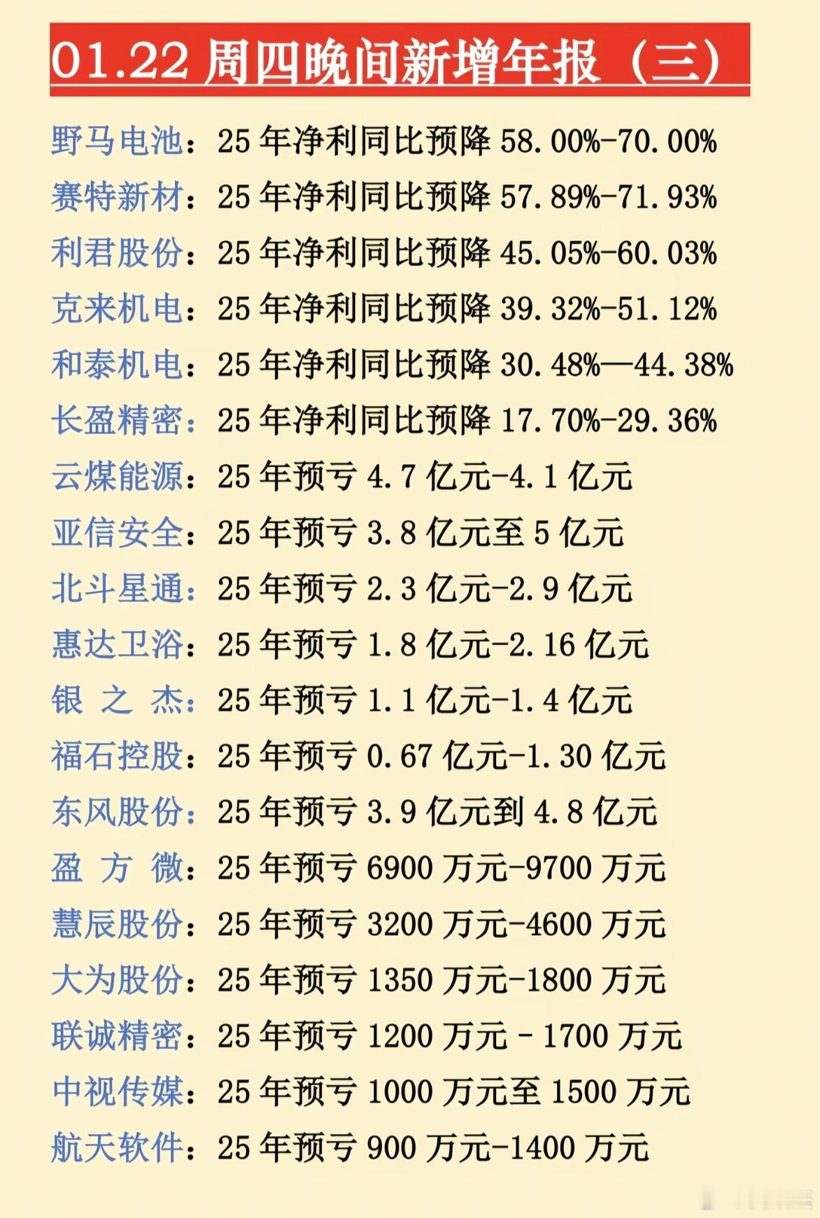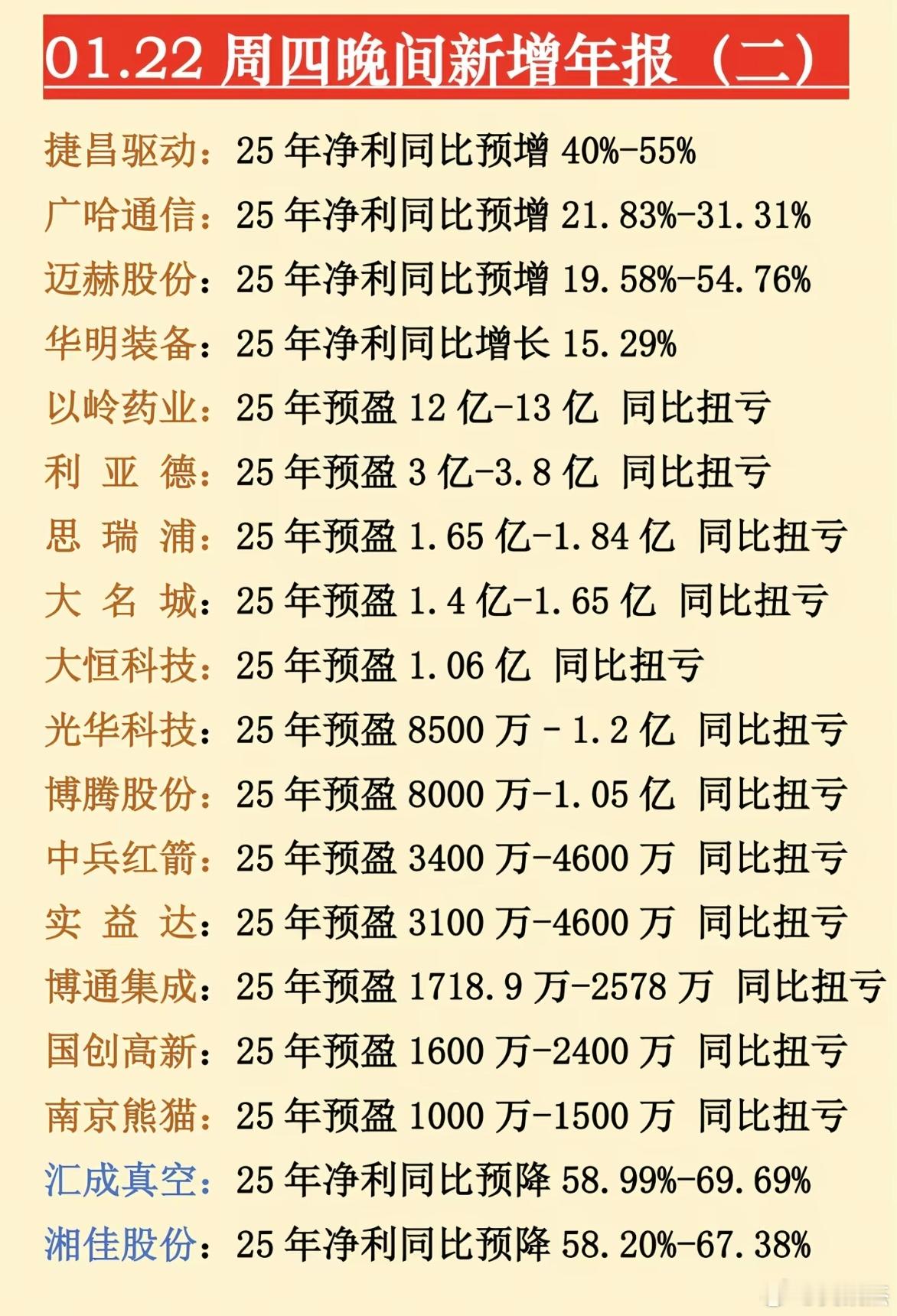晚间公告淘金,年报预增扭亏,预减亏损一览表,仅供参考。