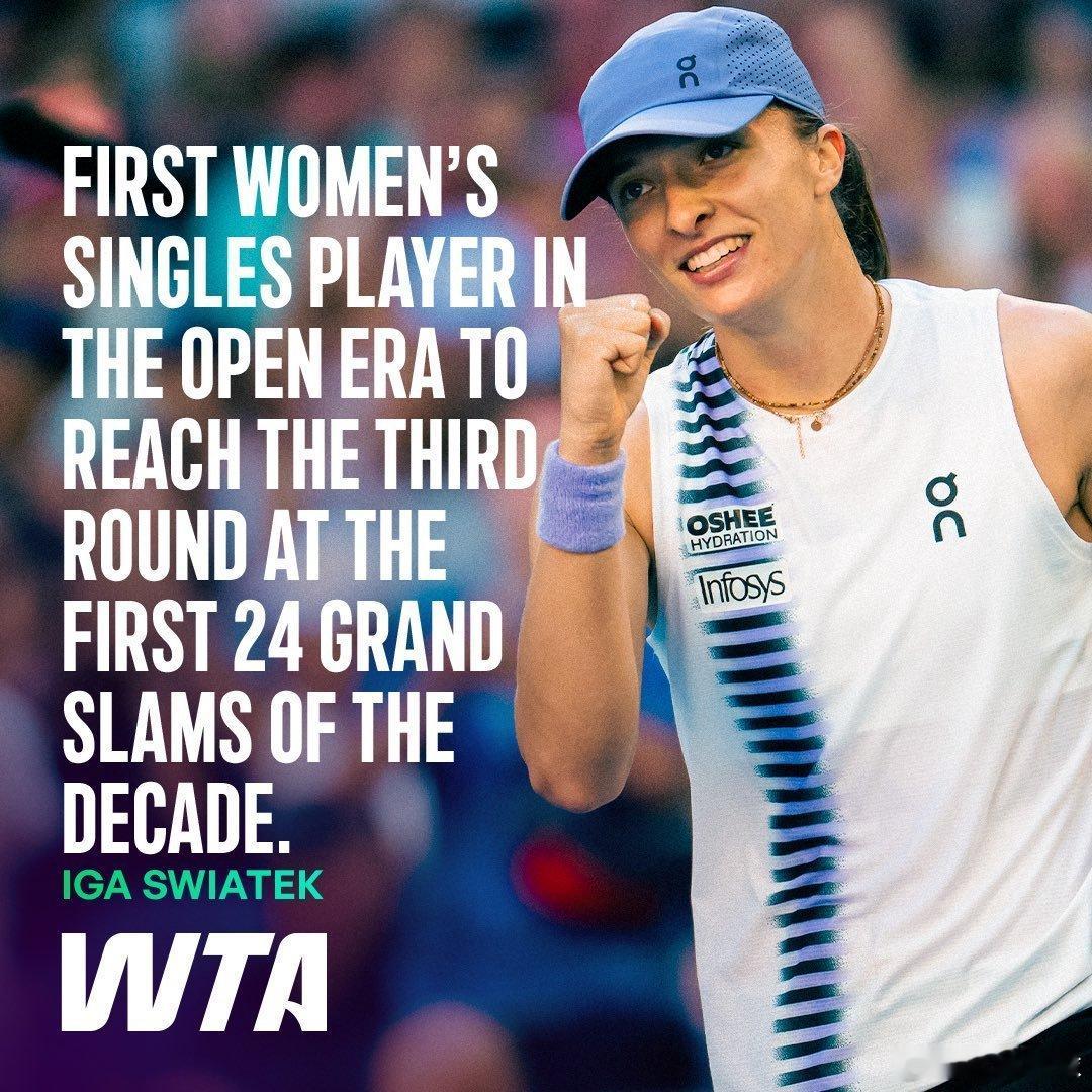🇵🇱斯瓦泰克在24岁的年纪,大满贯24次晋级第三轮。澳网2026这很澳网