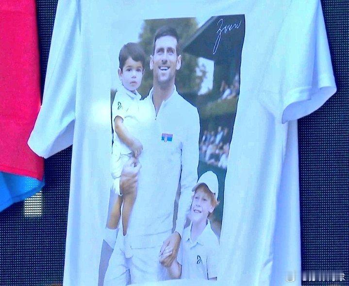 有球迷拿着一件德约老父亲抱着阿卡,牵着辛纳的体恤出现在慕尔本公园。这件衣服,大家都不陌生。这很澳网澳网2026