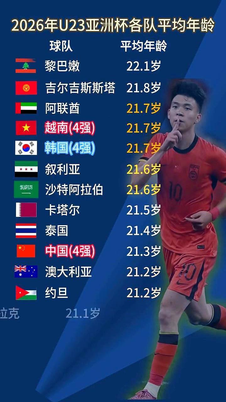 U23亚洲杯平均年龄一出,立马把人分成了两拨。 老大哥黎巴嫩22.1岁,上来就摆“拼现在”的架势。 另一边,乌兹别克斯坦直接拉20.3岁的小孩上阵,摆明了说:成绩先放一边,先把2028奥运门票的底子打好。 中间那群21岁上下的,才是这次比赛的主角。 中国21.3岁,一路杀进决赛,头一回没这么硬过;越南21.6岁,半决赛被3比0,但也够让球迷嗨一阵。 说白了,谁真练新人,谁只想借超龄蹭成绩,名单一看就露馅。 年轻不是遮羞布,但藏着未来的门票。