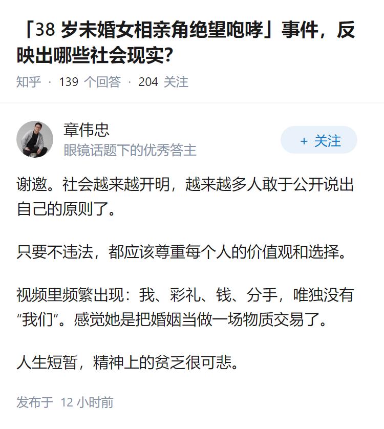 「38 岁未婚女相亲角绝望咆哮」事件,反映出哪些社会现实? ---------