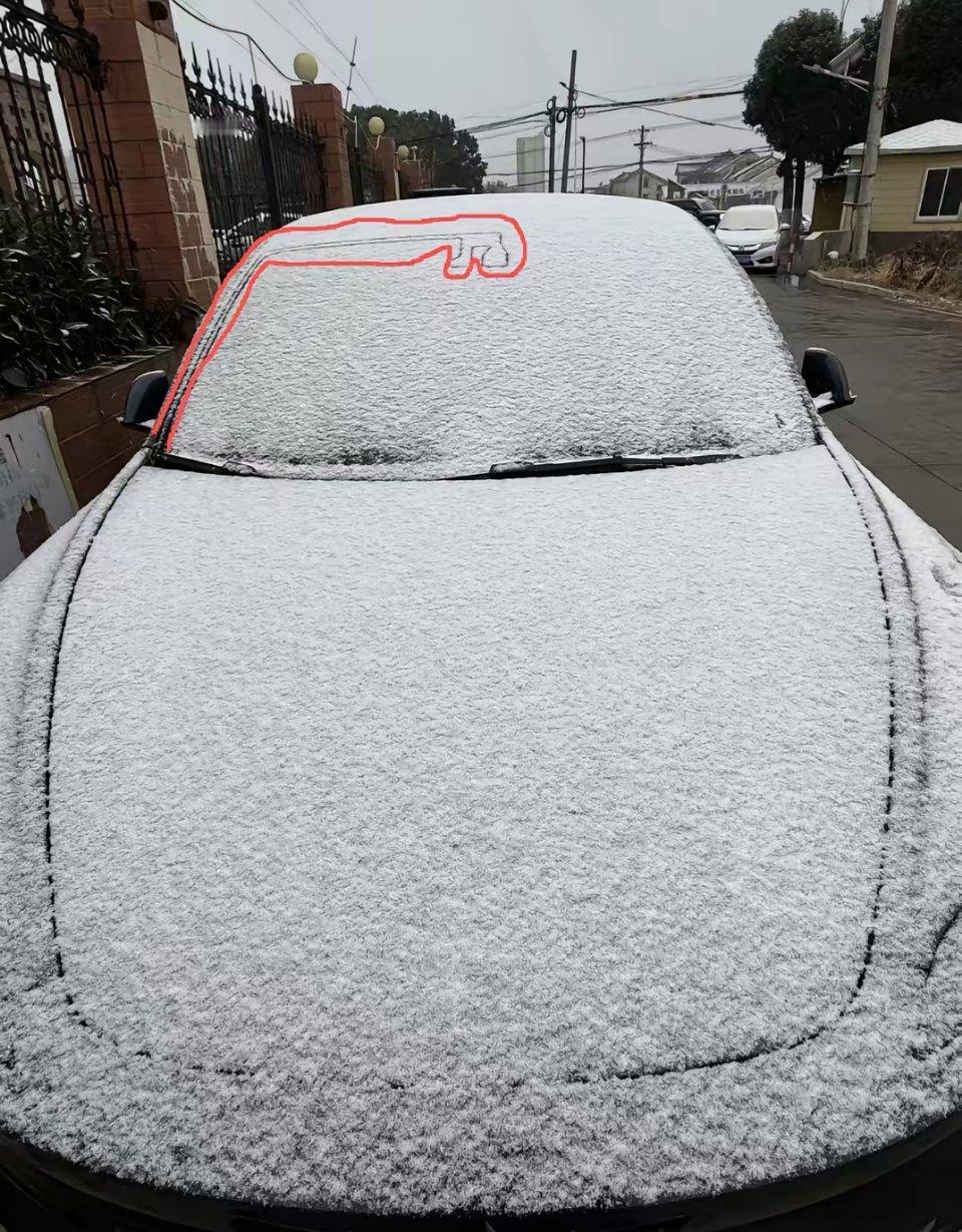 特斯拉的这个位置咋就没被雪盖住呢?车停在露天的地方,早上起来一看,下雪了,车上有积雪,既没进车里,也没开加热,更没开哨兵模式,可这一条为啥就没雪呢,纯粹是好奇啊!