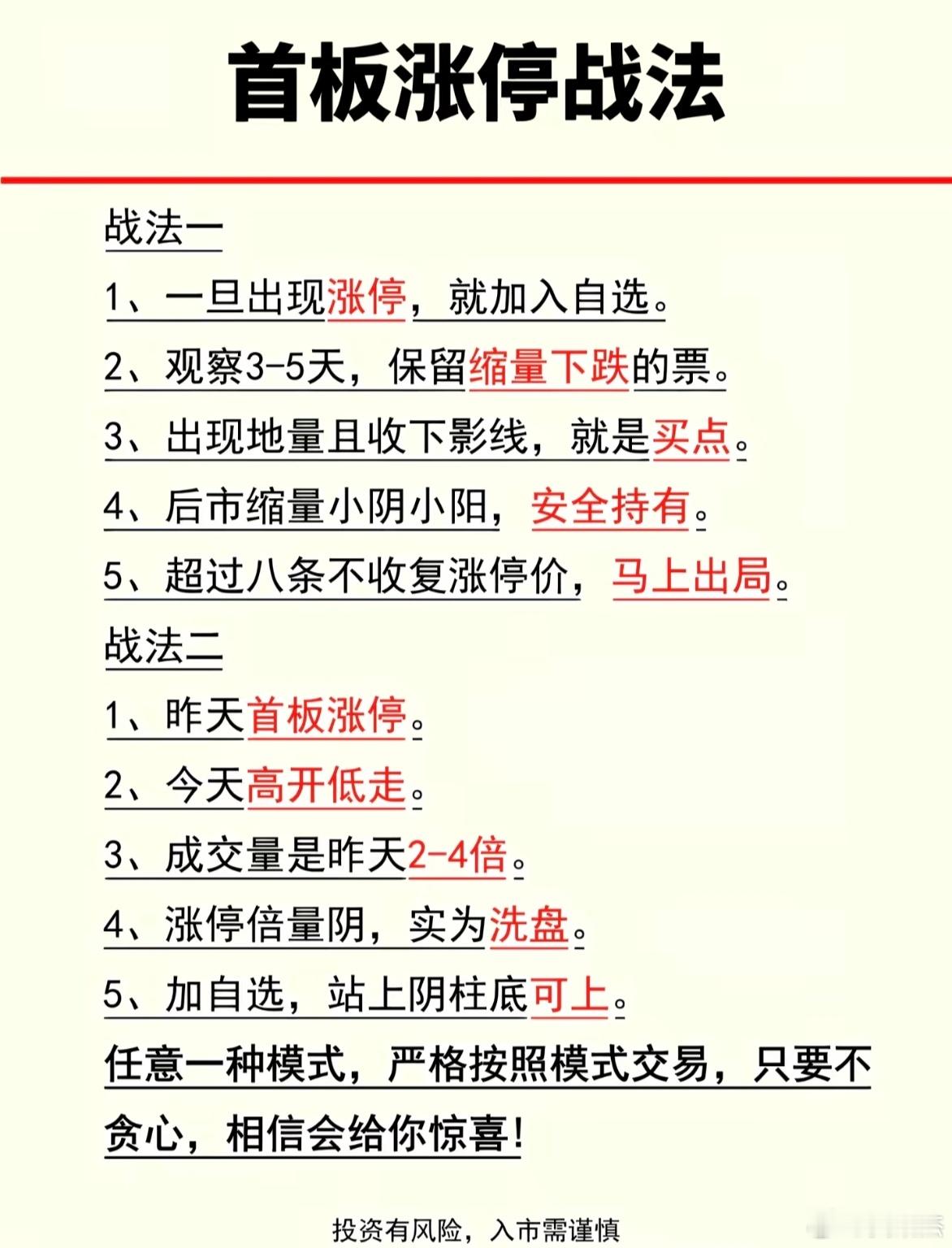 首板涨停战法,这是短线高手必备技能,做短线,没有出现过涨停板的话,基本上不碰的。仅供参考。