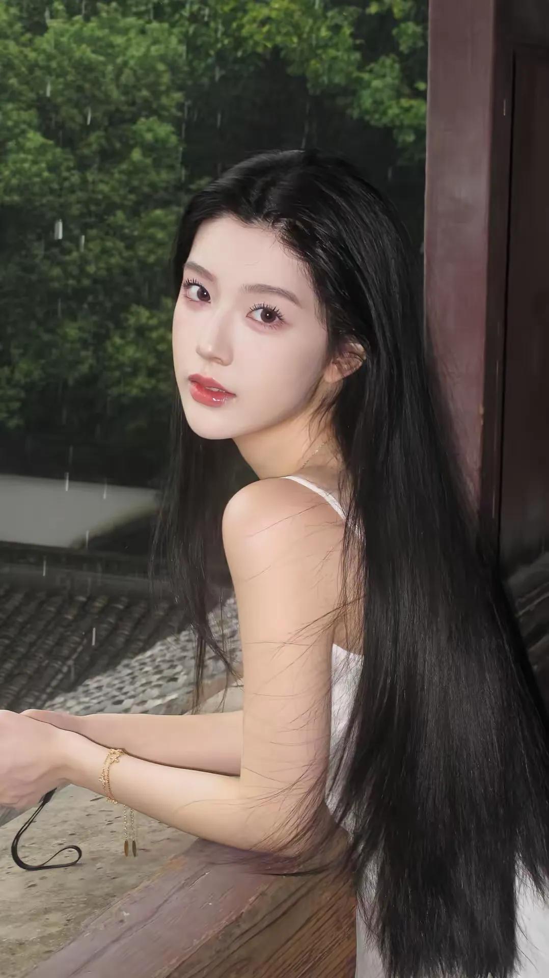 温柔似水的东方美人,黑纱轻掩,宛如画卷中的古典美人。