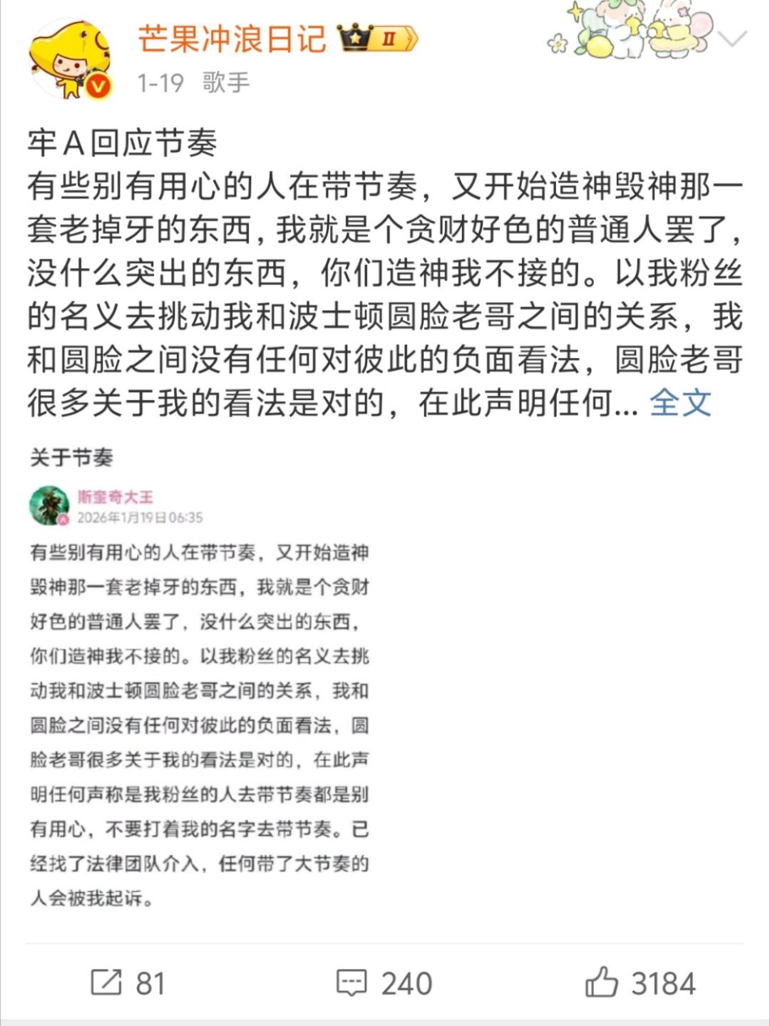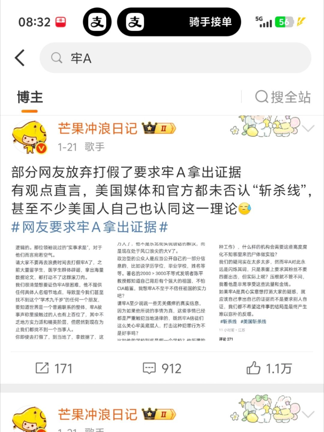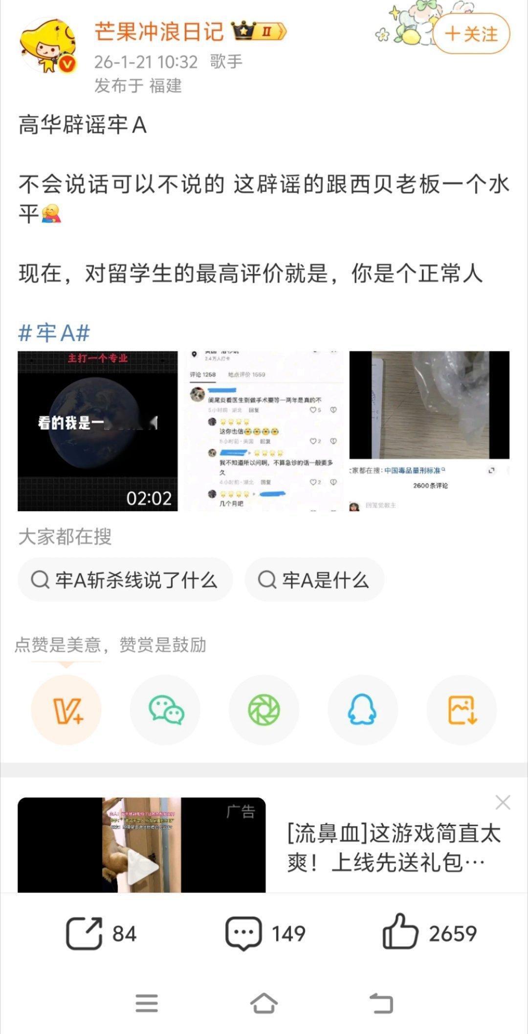 网友开始打假牢A了这个太恶心了,从牢A火了之后,就正正反反的吃他的血馒头,更是搬了一堆乱七八糟的反对声音,试图包装成“牢A被辟谣”的事实。最恶心的就是目前这个,牢A正在被侵犯隐私和人肉搜索,竟然给的出了“网友打假牢A”的话题?这种赤裸裸的违法和侵权,在你眼里是“打假”?
