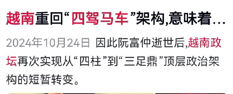 越南重回"四驾马车"架构权力机制? 越南政坛常说“按惯例办事”,但这次“四驾马车