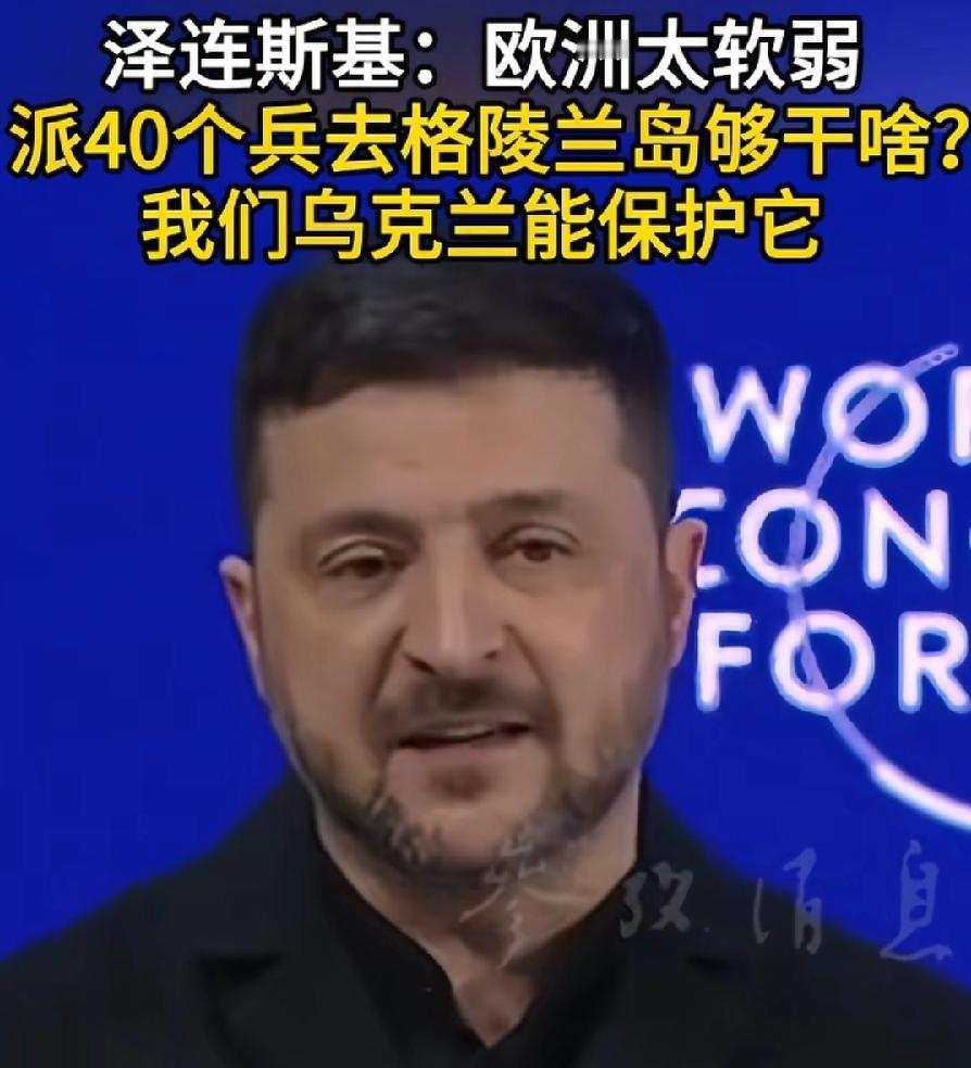 泽连斯基想加入北约,已经魔怔了!三句话不离北约!在达沃斯论坛演讲,乌克兰能保护格陵兰岛!这!自己都保护不了,还保护别人?这是几个菜?喝成这样?泽连斯基的逻辑是,如果我们是北约成员国,我们可以与欧洲国家一起参与派兵!言下之意,哪怕我们在打仗,可是我们还是想出力,可惜出不让,北约不给机会!格陵兰岛与乌克兰八竿子打不着,硬是被泽连斯基扯到了一起,脑子里全是北约!